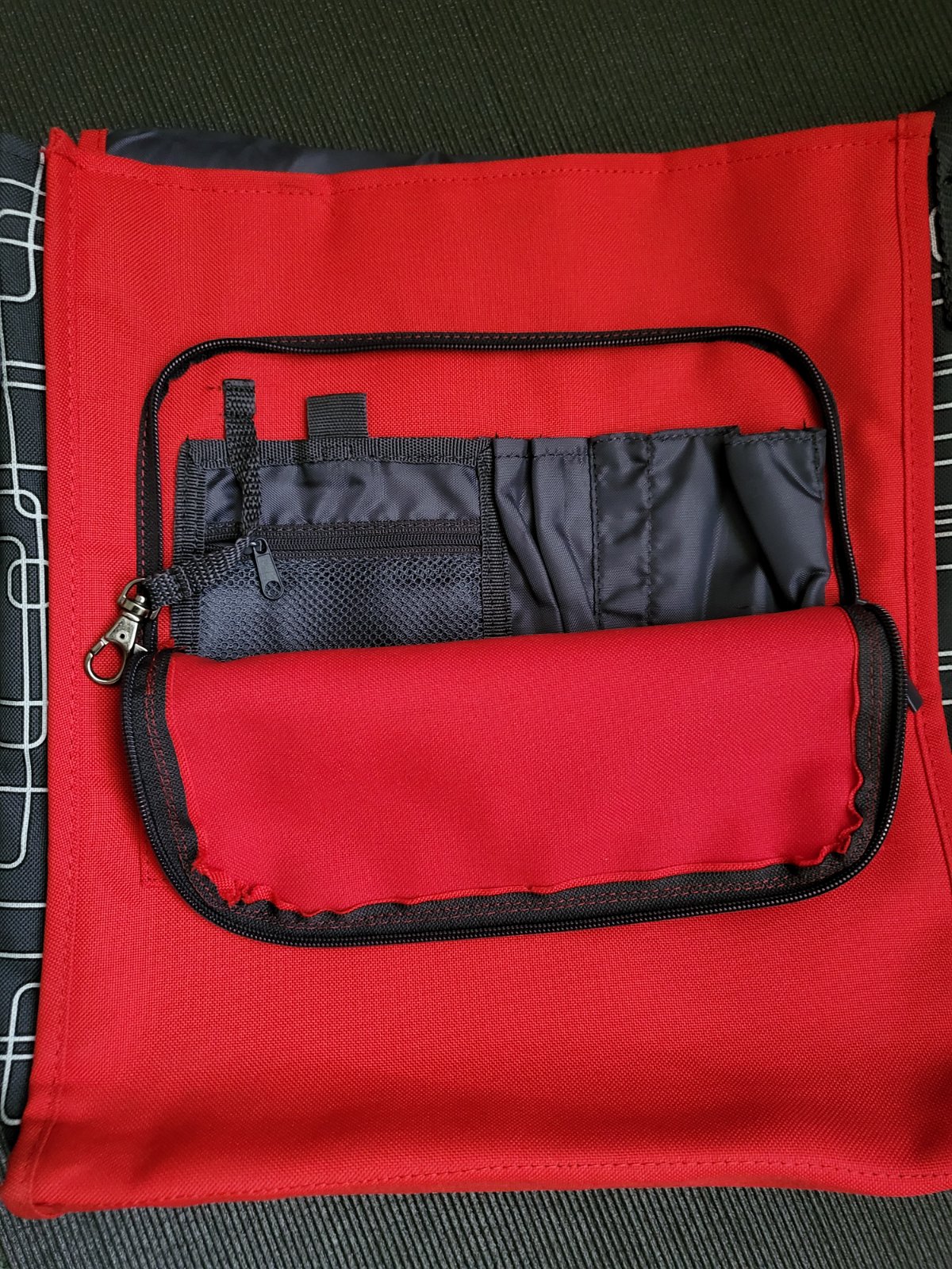 Predám praktickú textilnú tašku s množstvom oddelení.