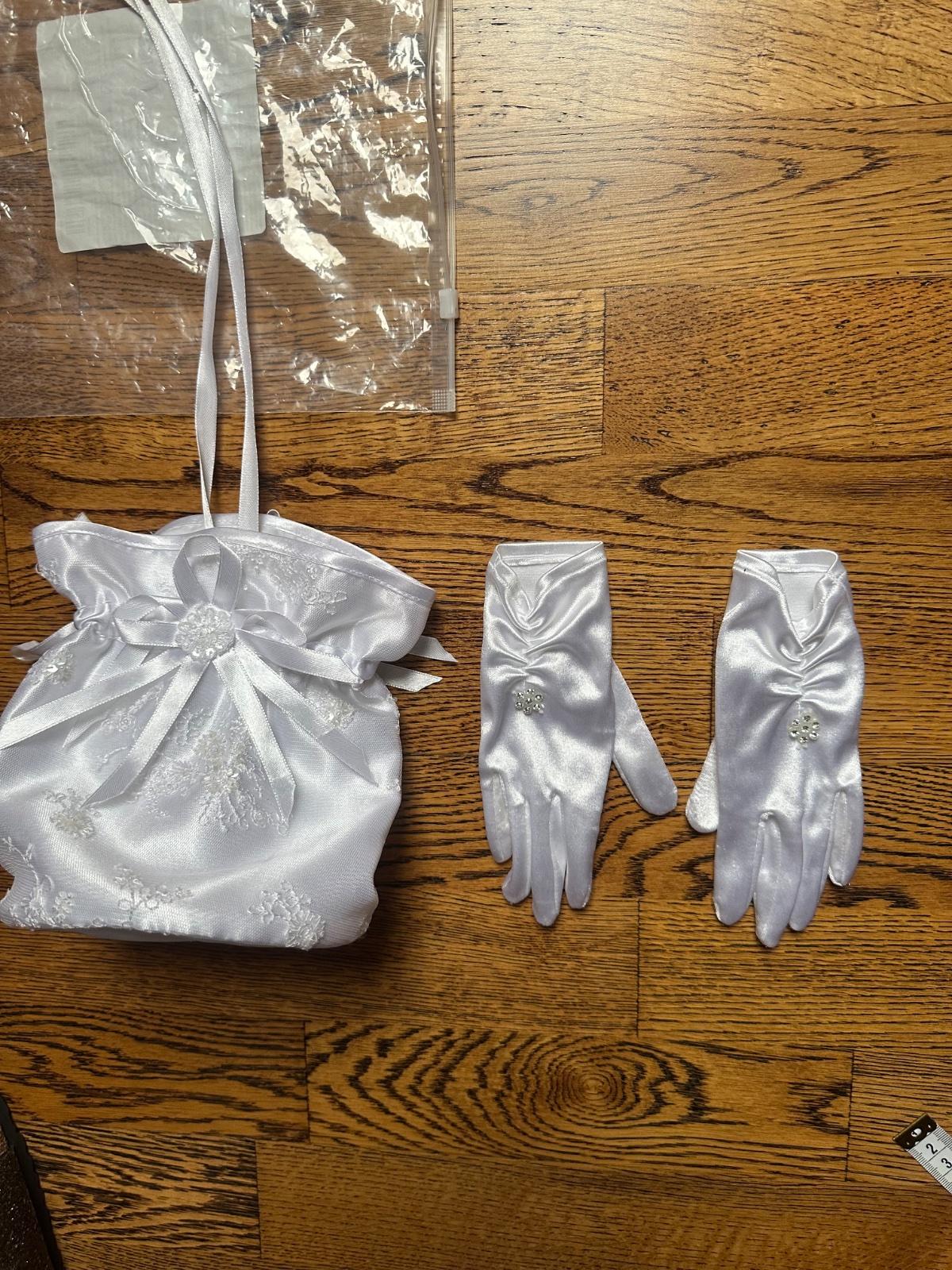 Krasna tasticka a rukavicky. Raz vzate na prve sväte prijmanie.
