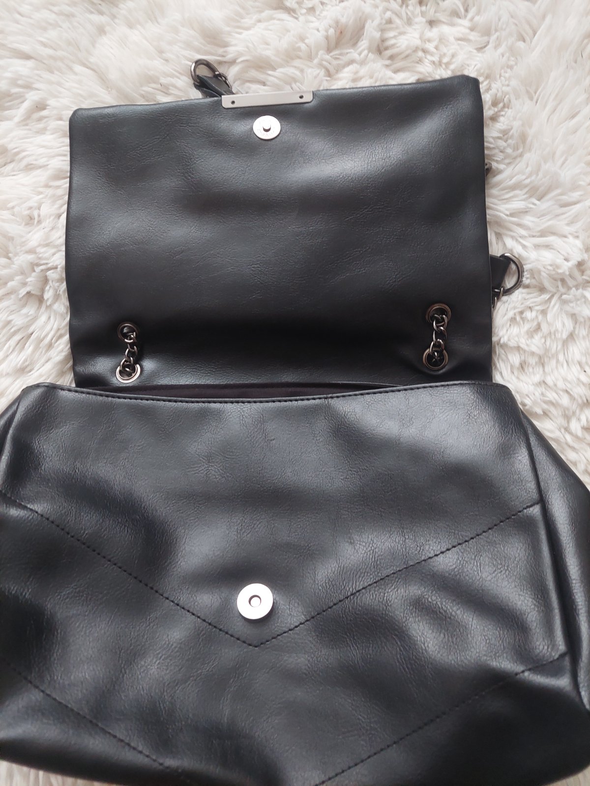 Kabelka na magnetické zapínanie s veľkorysý vnútorným priestorom. Imitácia kože. Výborný stav.