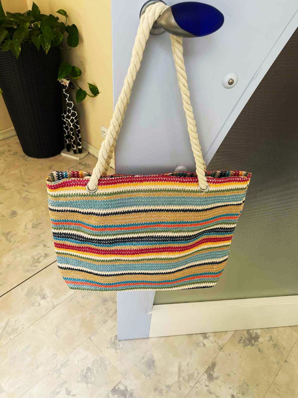 krásna min.nosená taška,akoby pletená z lyka,dnu bez prepážok,iba vrecko so zipsíkom,šírka 43 cm,výška 30 cm, dno 12 cm,rúčky 65/66 cm
