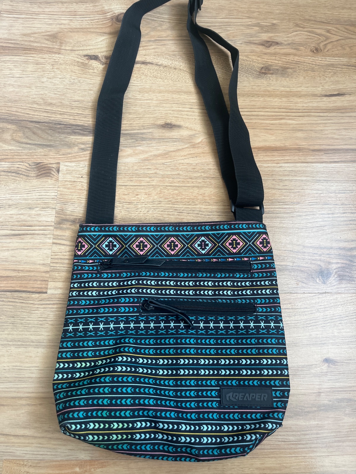 Predám športovú tašku cez rameno značky Reaper, kupovane v sportisime. Ma dve vonkajšie vrecká na zips. Vnútri tiez jedno menšie vrecko na zips. Nevidno žiadne známky nosenia.