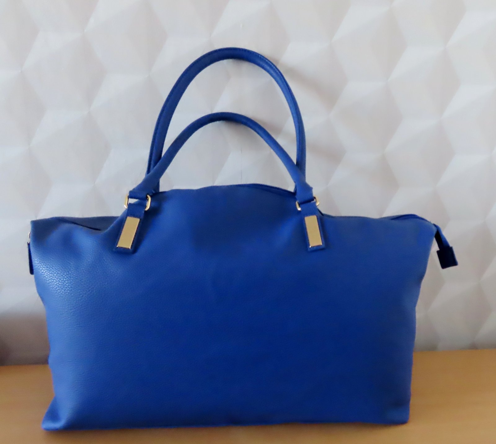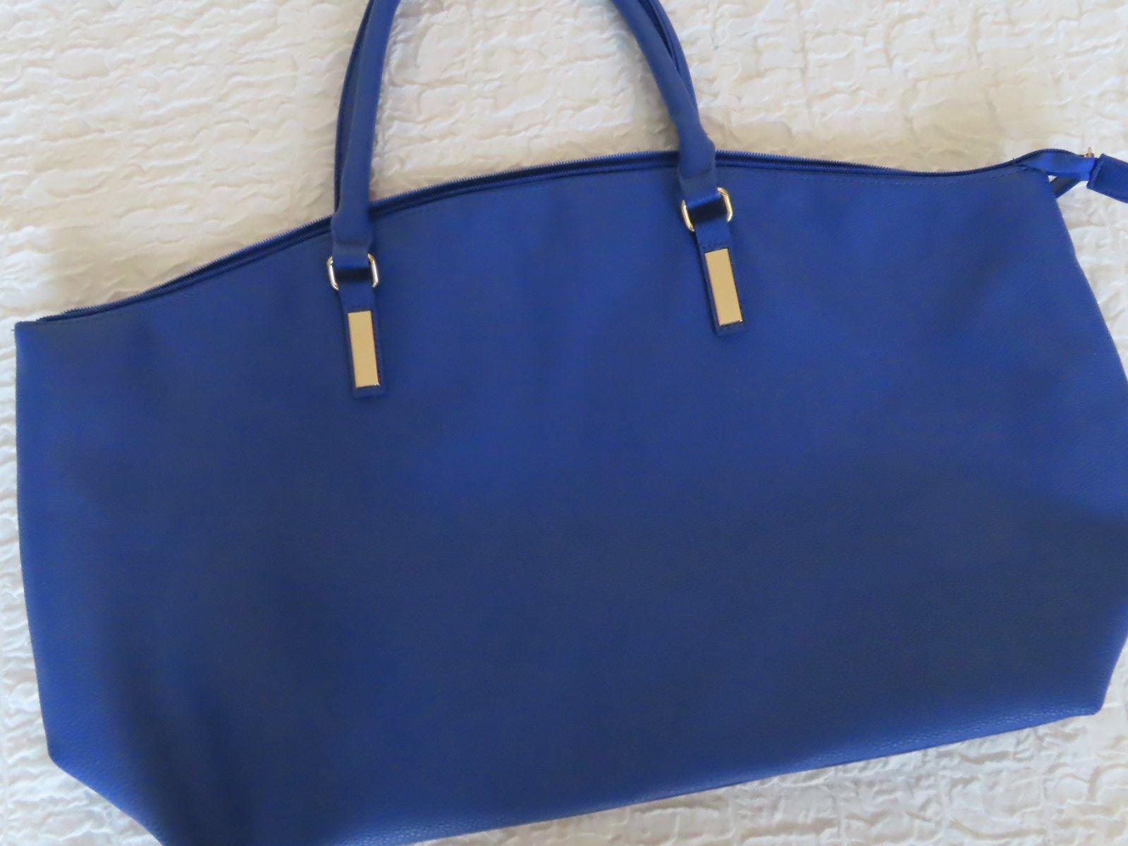 Väčšia kabelka, či príručná taška - rozmery: šírka dole 45cm, hore 57cm. Výška 32cm, hĺbka 20cm. Farba krásna svetlejšia kráľovská modrá.
