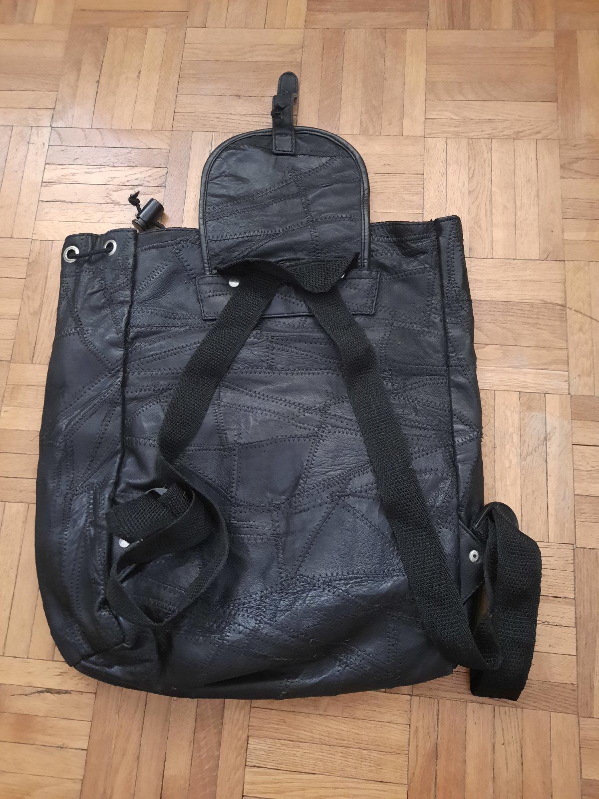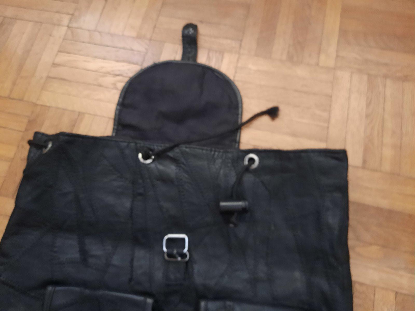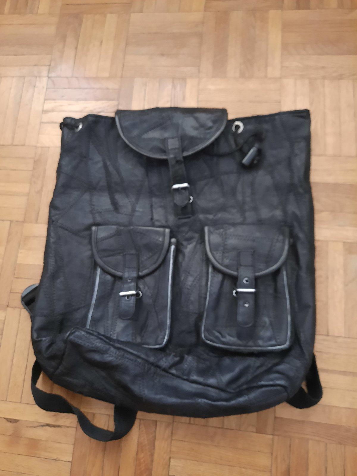 Pekný čierny ruksák, materiál je podľa mňa koža. Je príjemný mäkký na dotyk. Má veľký úložný priestor. Vo vnútri je malý vačok. Zvonka vpredu sú tiež 2 menšie vačky na ukladanie. Ramienka sú nastaviteľné. Celý ruksak sa dá stiahnuť šnúrkou + zapnúť (je tam malé poškodenie).