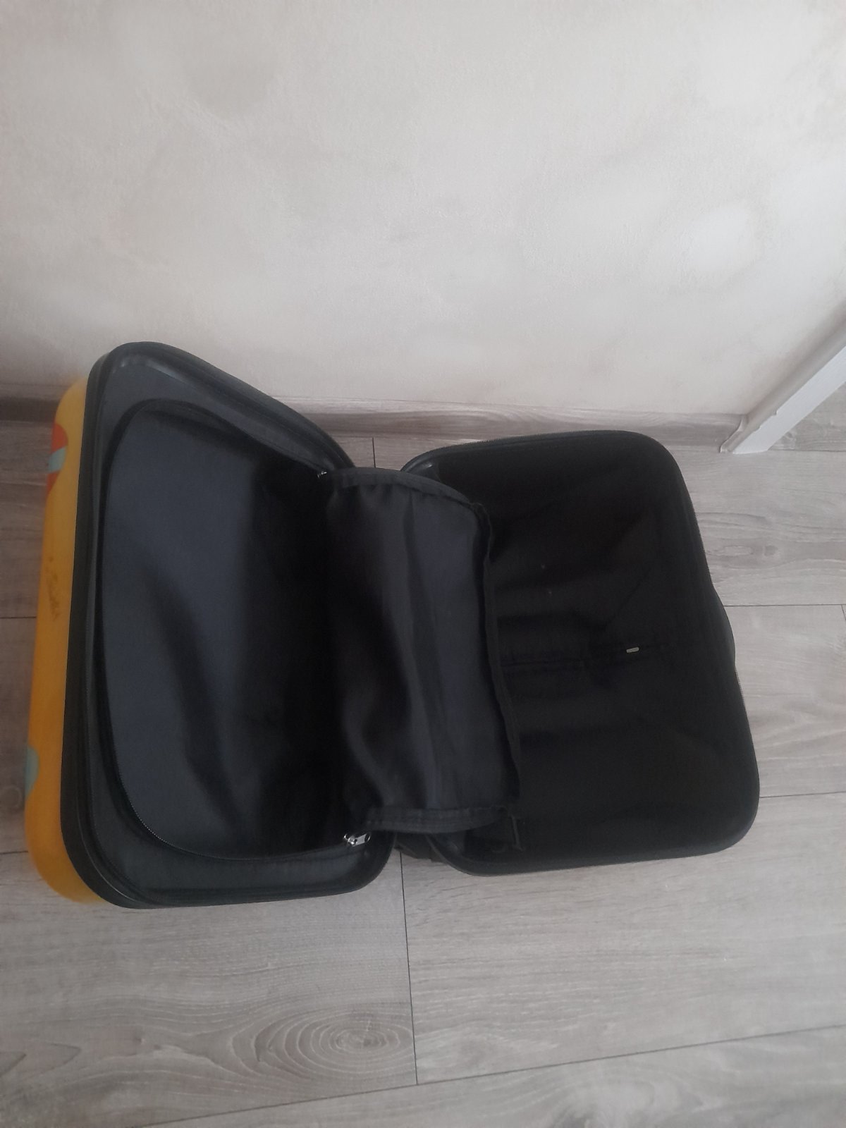 Cestovna velka taska na kolieskach a ma aj ramienko na plece. Je trochu suchnuta a trochu sa para rucka viď foto. Je priestranna ma tri ulozne priestory. Bezne znamky pouzivania. Je velmi pevna. P...