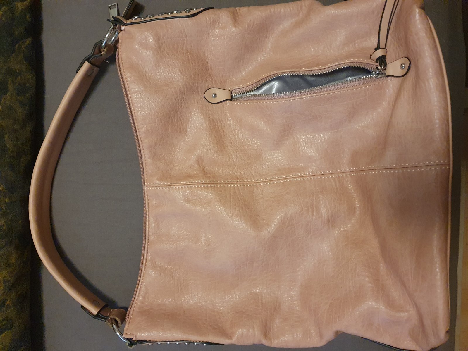 Taska (telo) zn. O bag. stredná, kvalitný PVC plast, lahko udržiavateľna, neznicena, stale pekna. Mam ich veľmi vela, takze niektoré posuvam dalej. Farba je sýto lososova.
