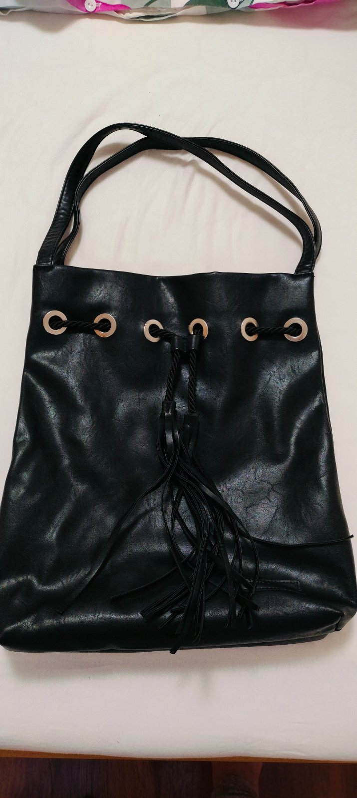 Ponúkam čiernu kabelku so strapcami , veľmi málo nosenú , skoro vôbec . Dnu jedno zipsovateľné vrecko, dva na doklady a mobil....je väčšia, aj na nákup, v pohode