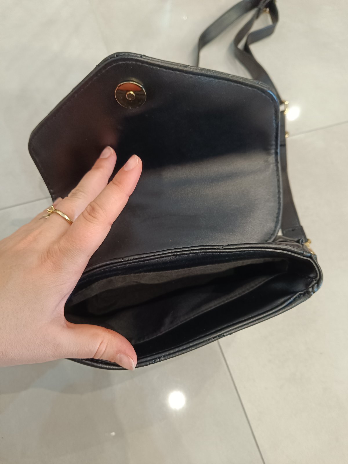 Čierno-modrá kabelka Segue do ruky aj cez rameno.