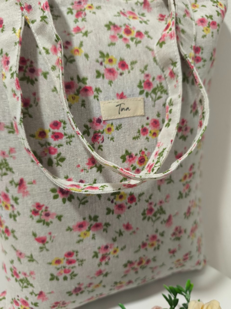 Taška kvety na bežovej
