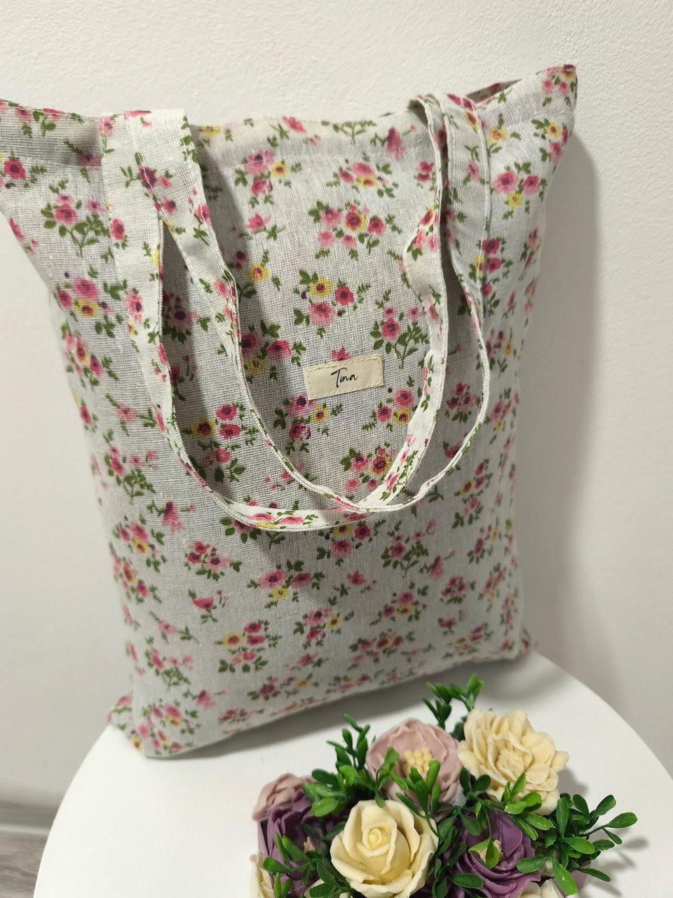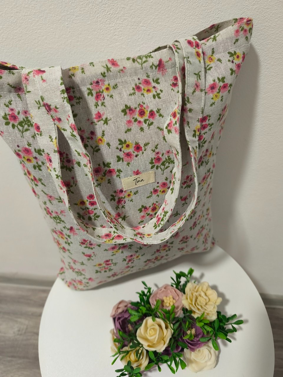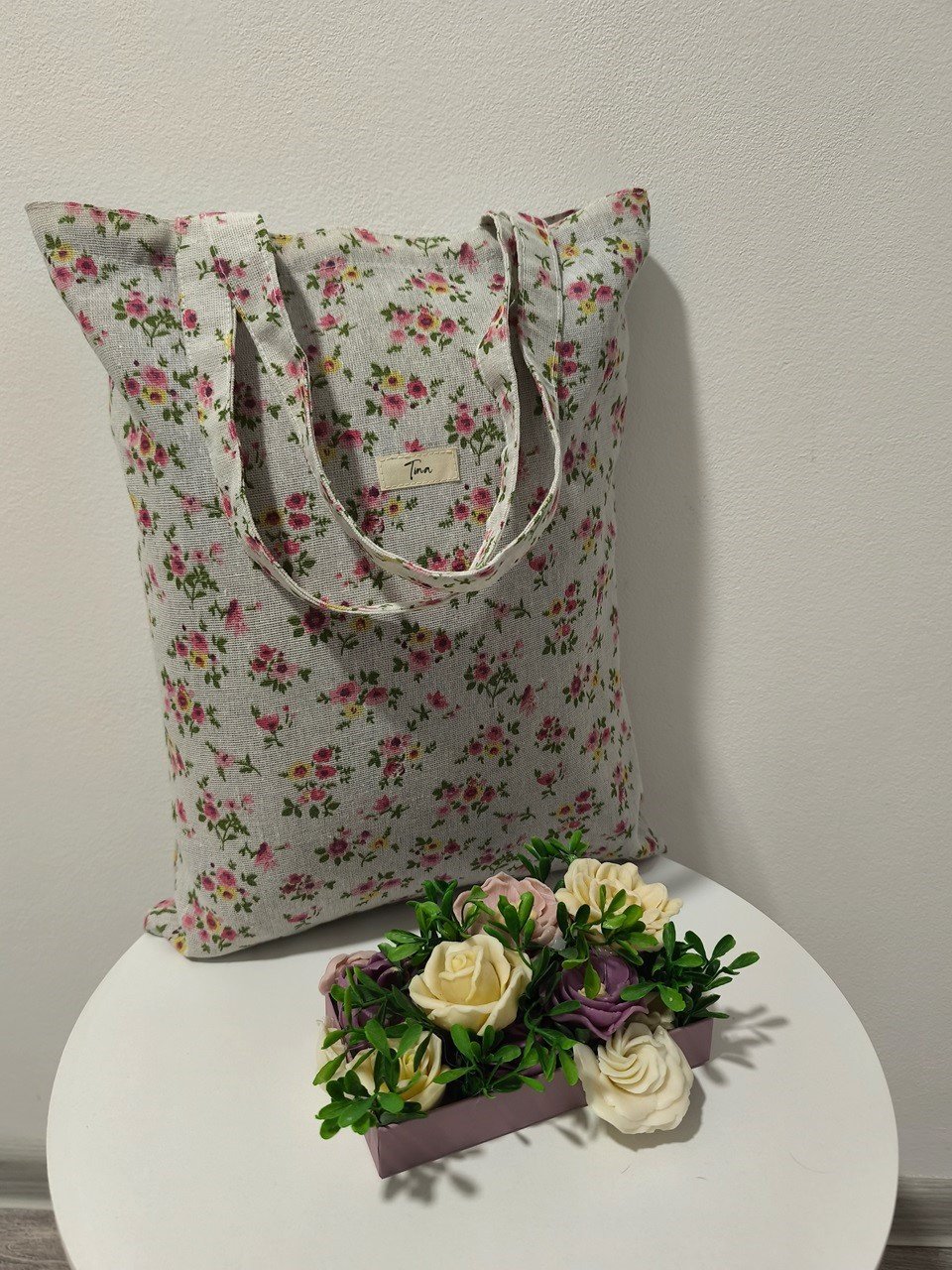 Táto taška je vyrobená zo 100 % pevnej bavlny ,gramáž 185g/m2 je to ako imitácia ľanu .