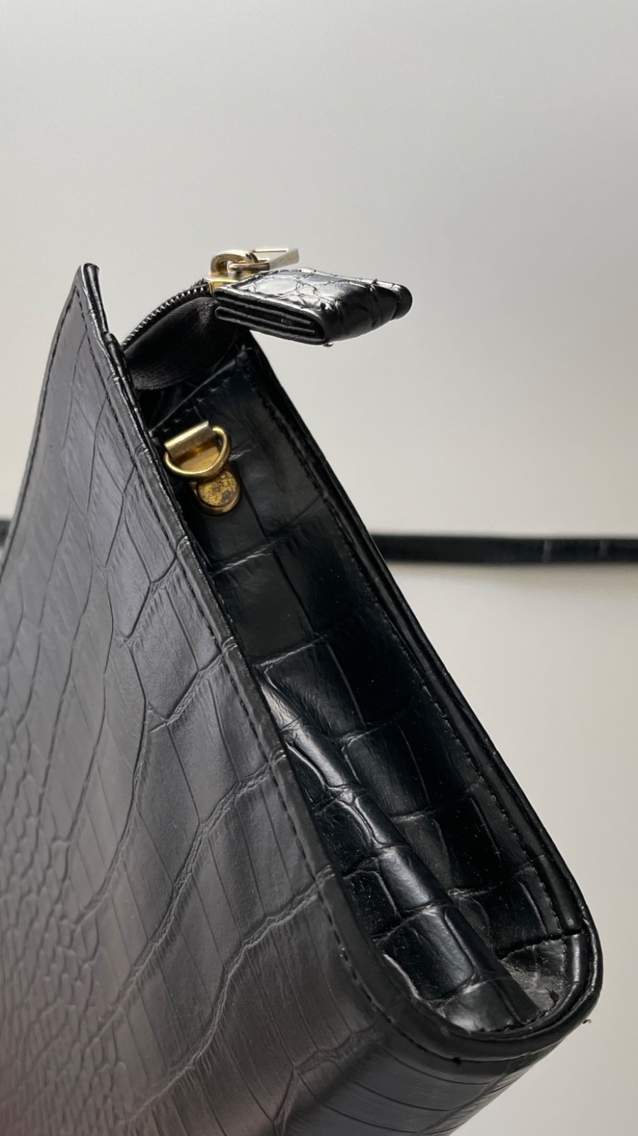 Predám zachovalú stredne veľkú embosovanú listovú kabelku s odnímateľným popruhom. Vzhľad krokodílej kože, zapínanie na zips. Dĺžka popruhu/rúčky 68 cm. Dve vnútorné vrecká + vnútorné vrecko na zips.