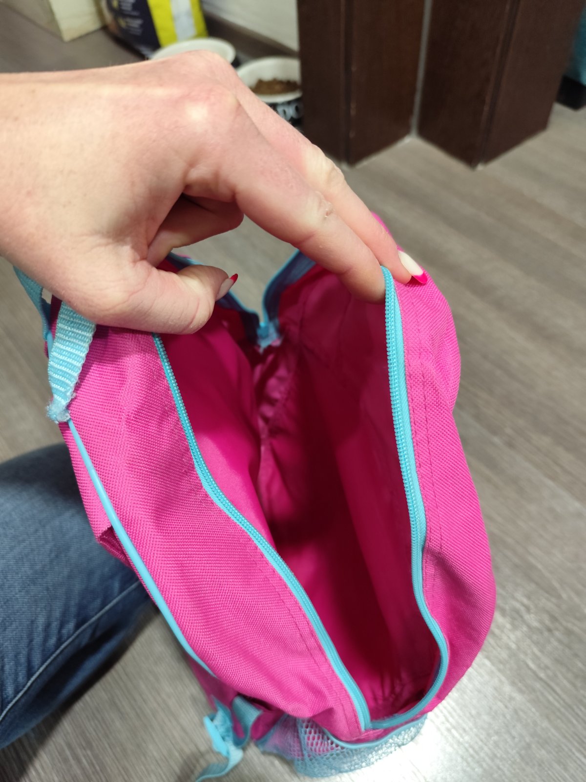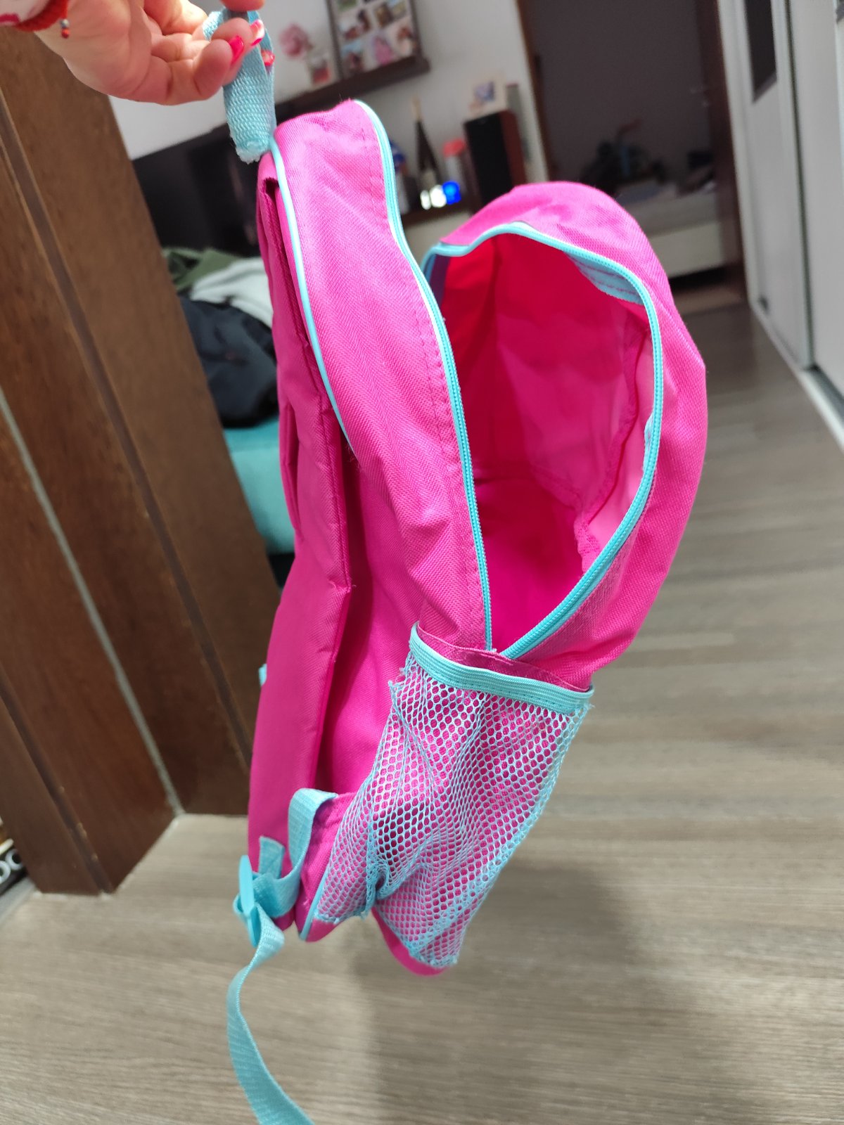 Krasna, malo hrana plysova Minnie (bez zavad) sa vozi v batôžku na chrbte do skolky 😍 Ruksacik noseny, zips funkcny, nie je roztrhany, ramienka funkcne