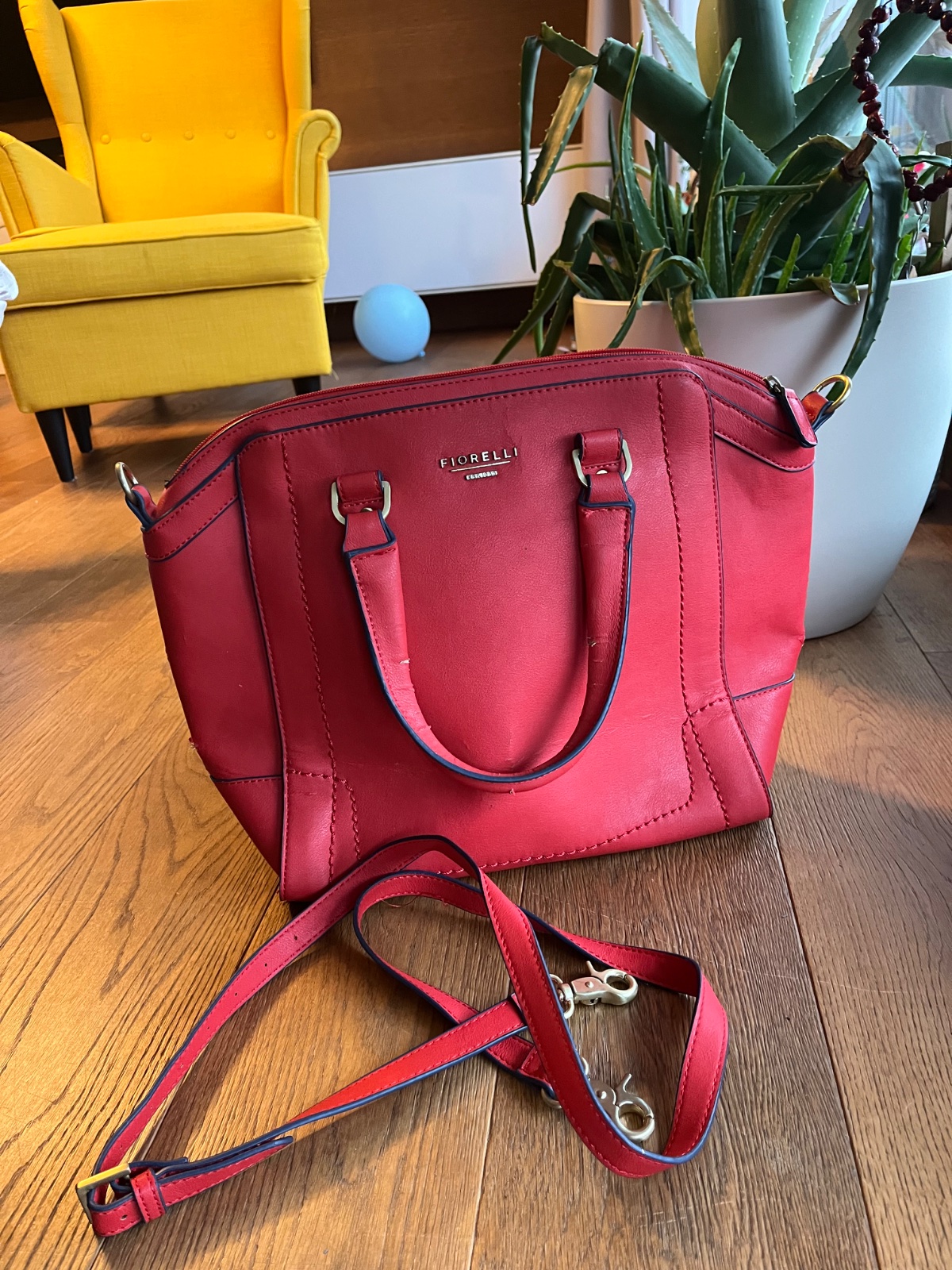 Málo nosená kabelka, triedim si veci, oranžové šaty uż ani nemám,takze ani kabelku uZ nepotrebujem. Rozmery: 29*22*14