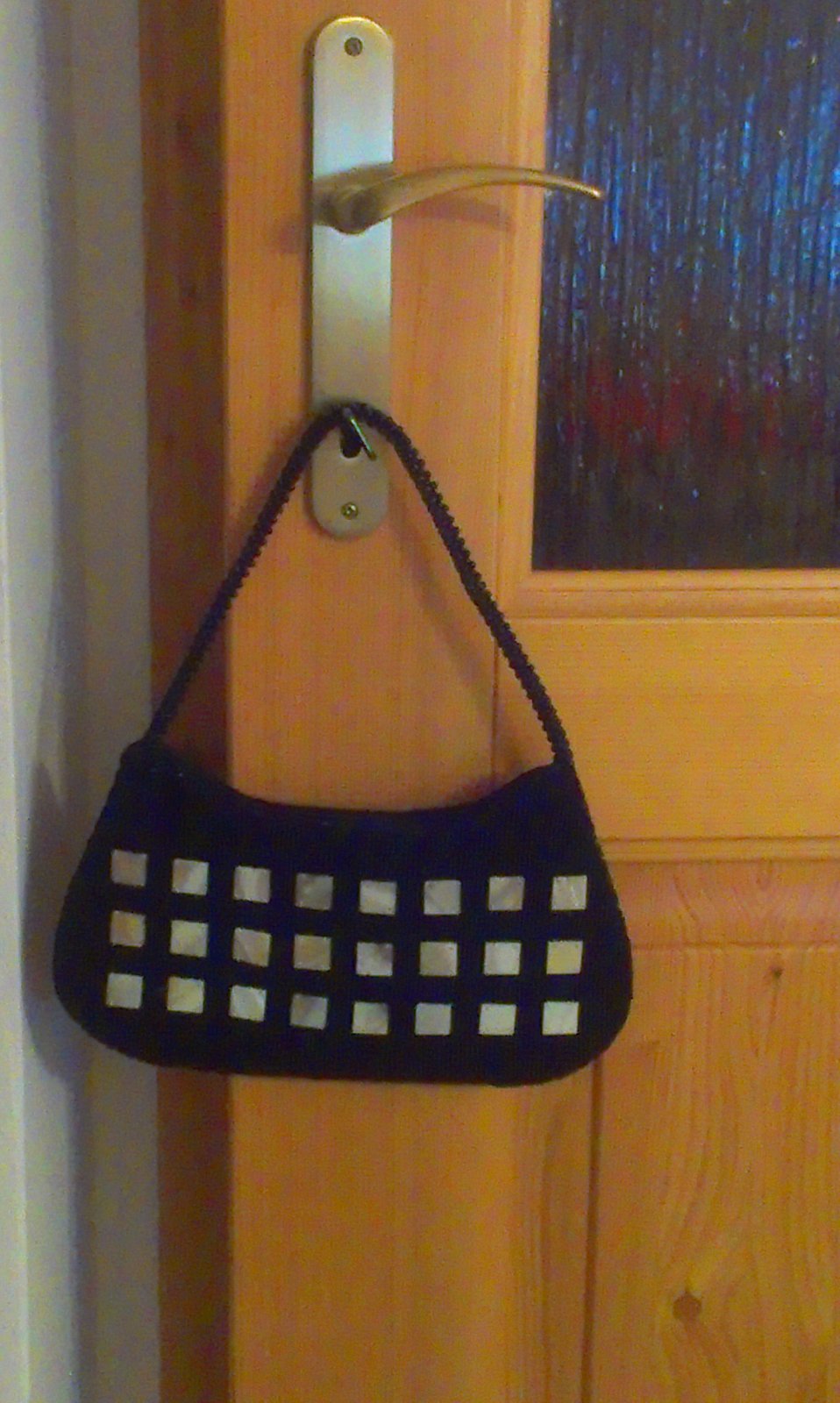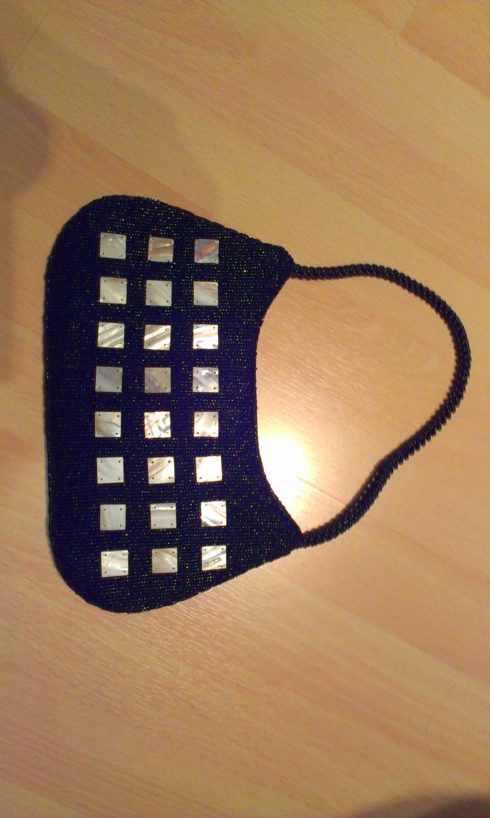 Predám malú čiernu kabelku vykladanú čiernymi korálkami, zdobenú bielymi perleťovými aplikáciami, vyzerá naozaj efektne. Nenosená. Cena+pošt.