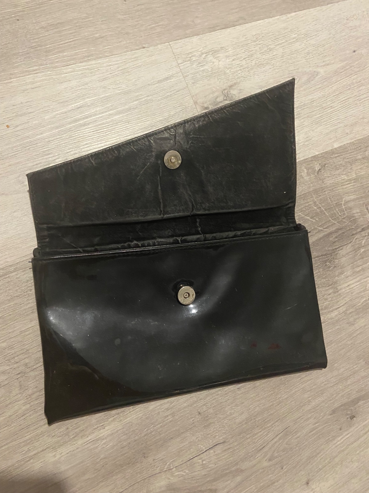 originál Guess kabelka, zapínanie na klip, vo vnútri vrecko na zips, na jednom mieste vid.foto 3 trošku olupana koženka po okraji, rozmery: dl.-15,5 cm, š.-2x 17 cm