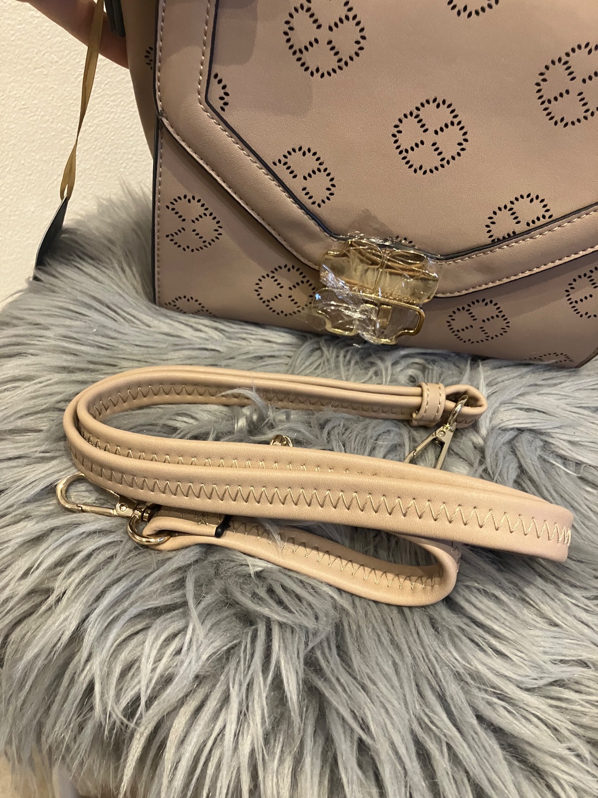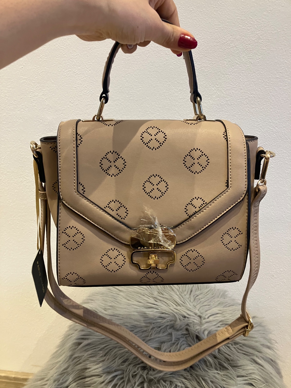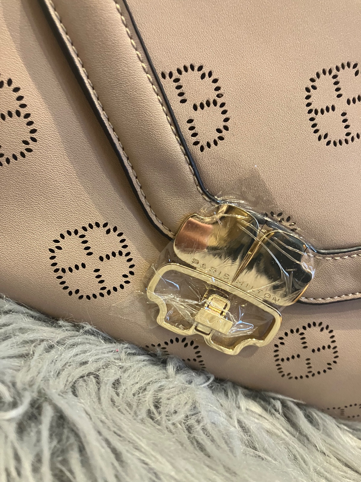 Dámska kabelka do ruky od Paris Hilton, Beige RAPPUNZEL, s odnímateľným a nastaviteľným popruhom cez rameno. Menšia tvrdá kabelka. Zapínanie s otočným magnetom a na zips. Vo vnútri má jedno vnútorné vrecko so zapínaním na zips, a jedno vrecko bez zapínania. Vzadu je menšie vrecko na zips.