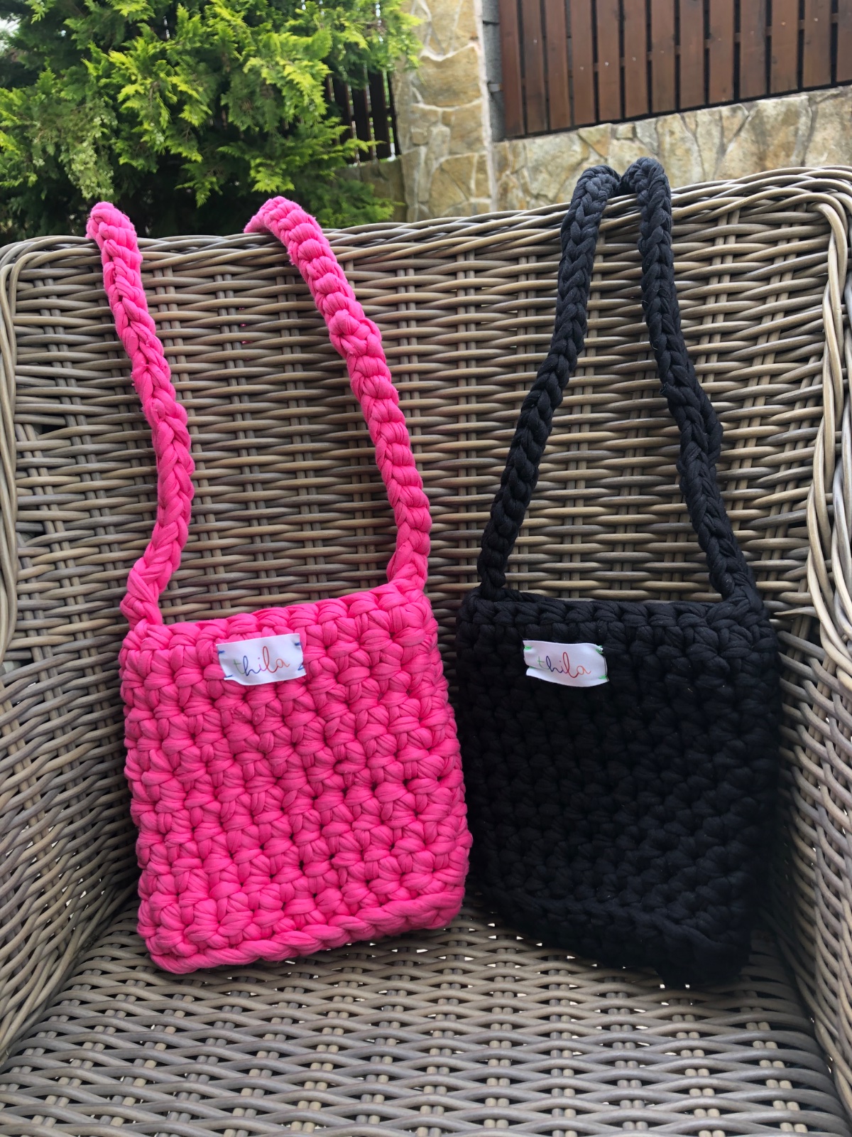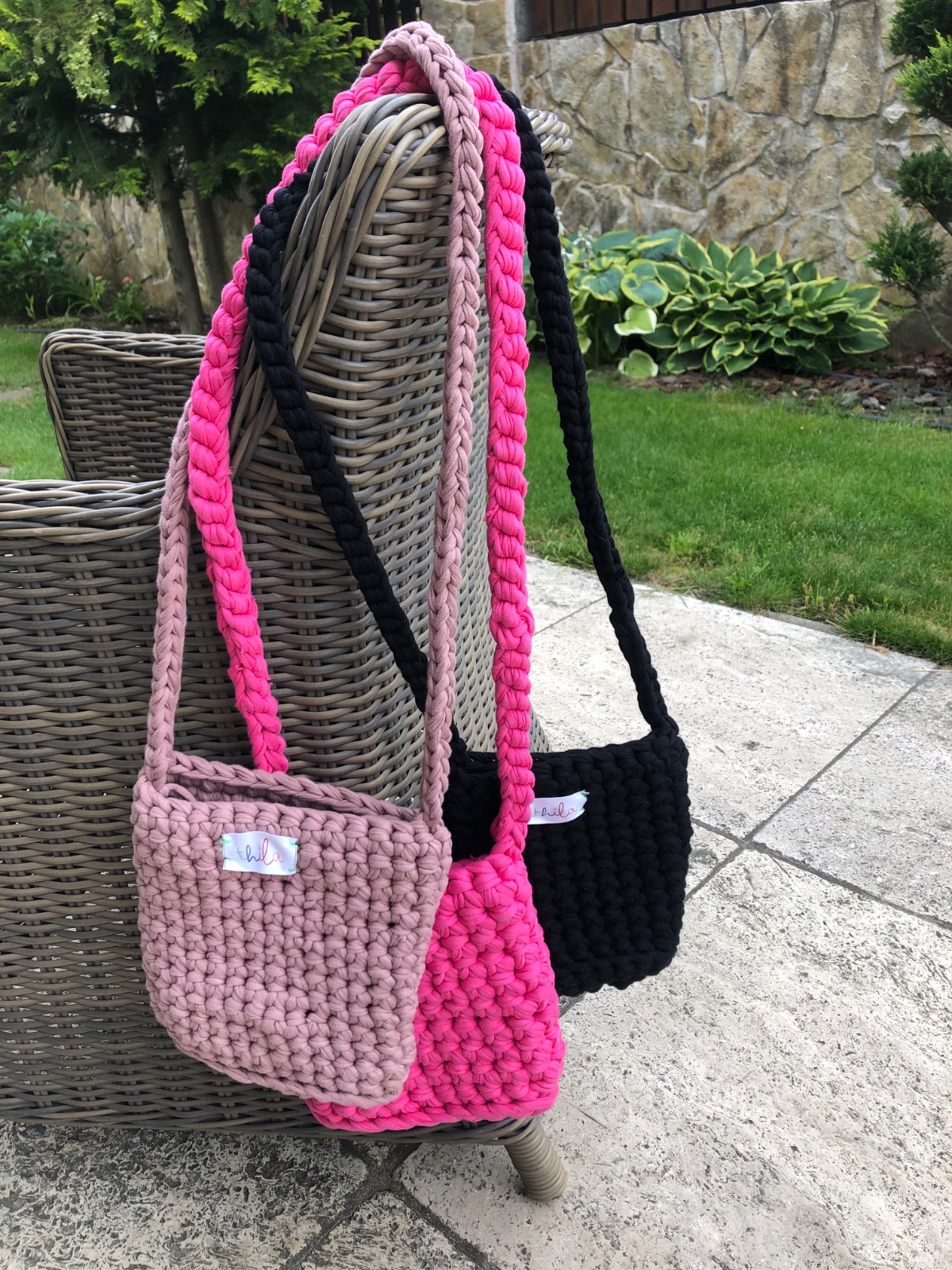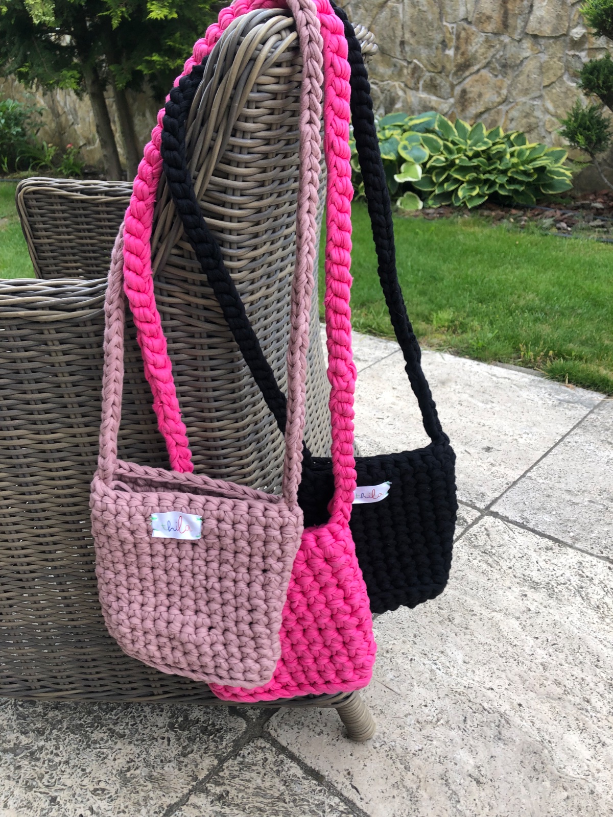 Krásne ručne robené háčkované kabelky, sú pevné, držia tvar, v rôznych farbách urobím aj na želanie. Zmestí sa malá fľaša, peňaženka, mobil, ideálna veľkosť do mesta na drobnosti. Vlastná značka thila.