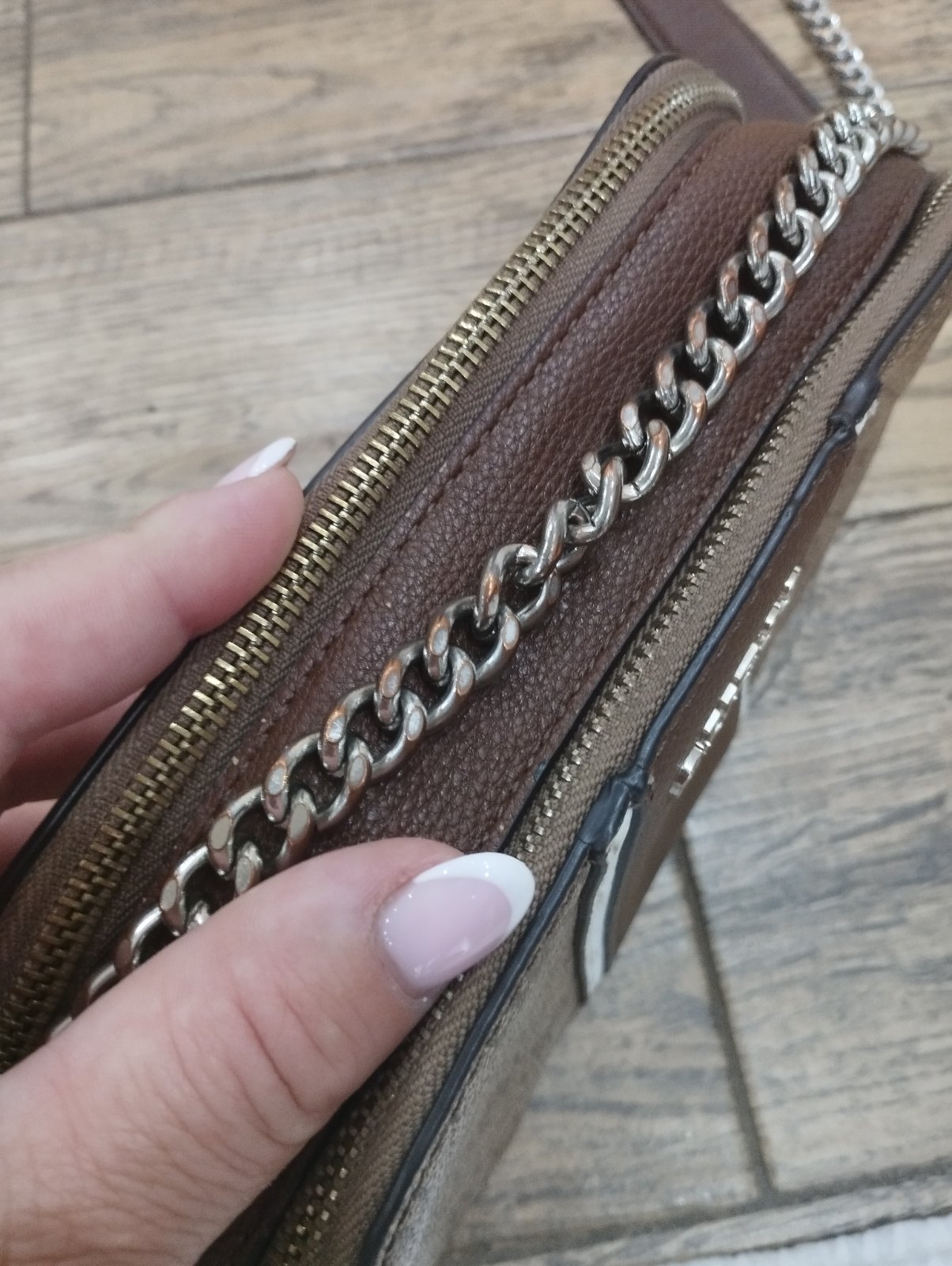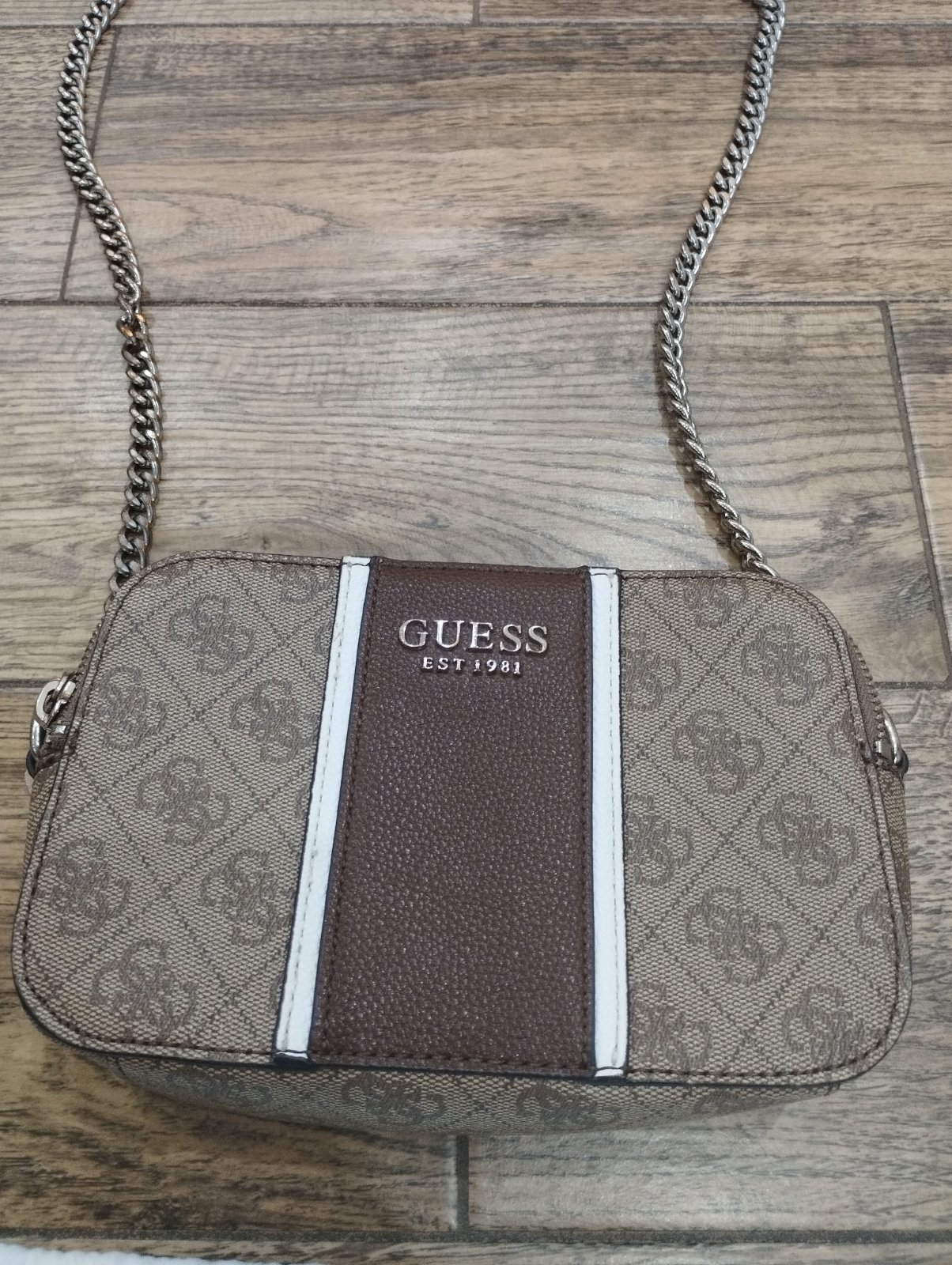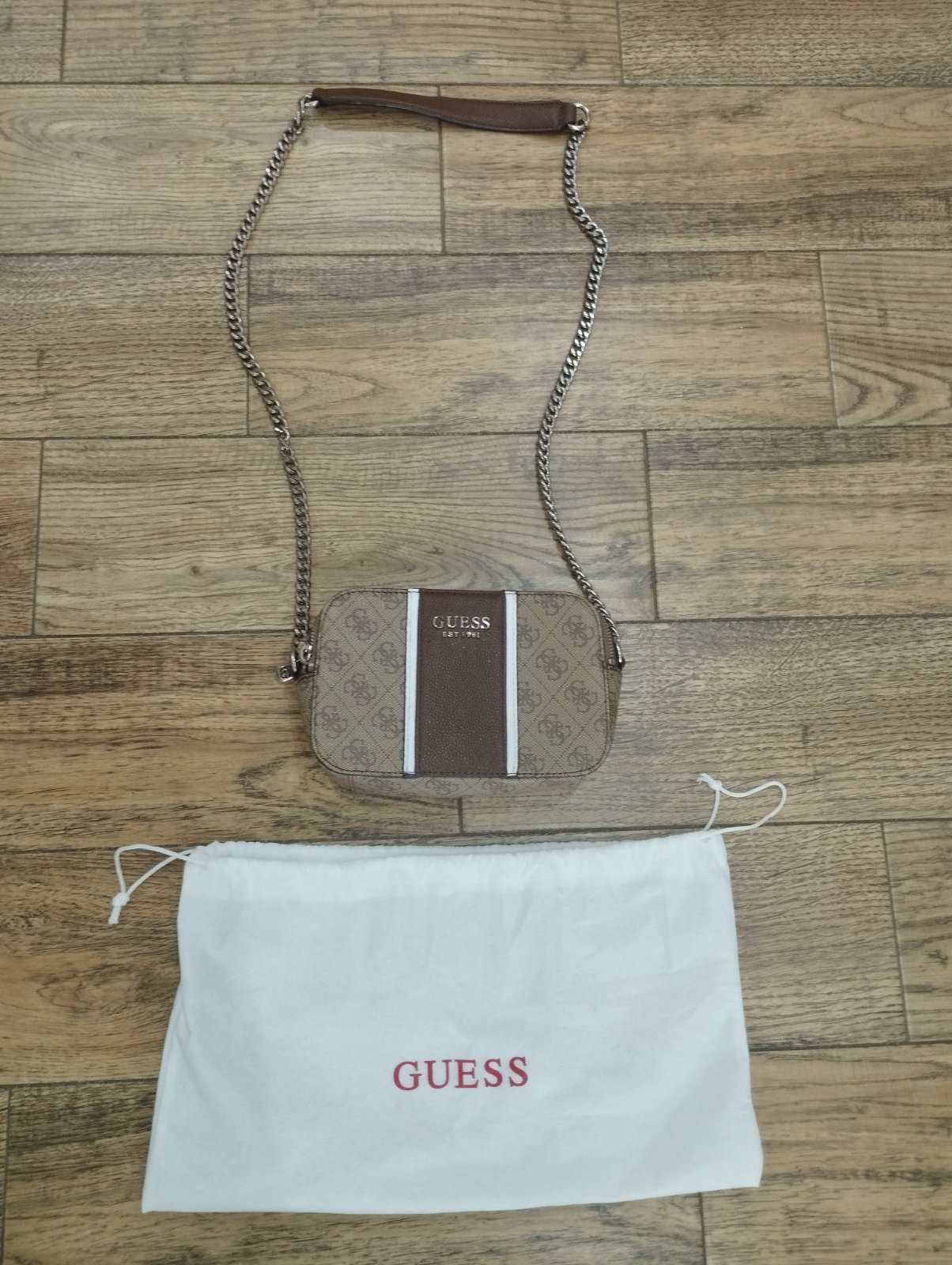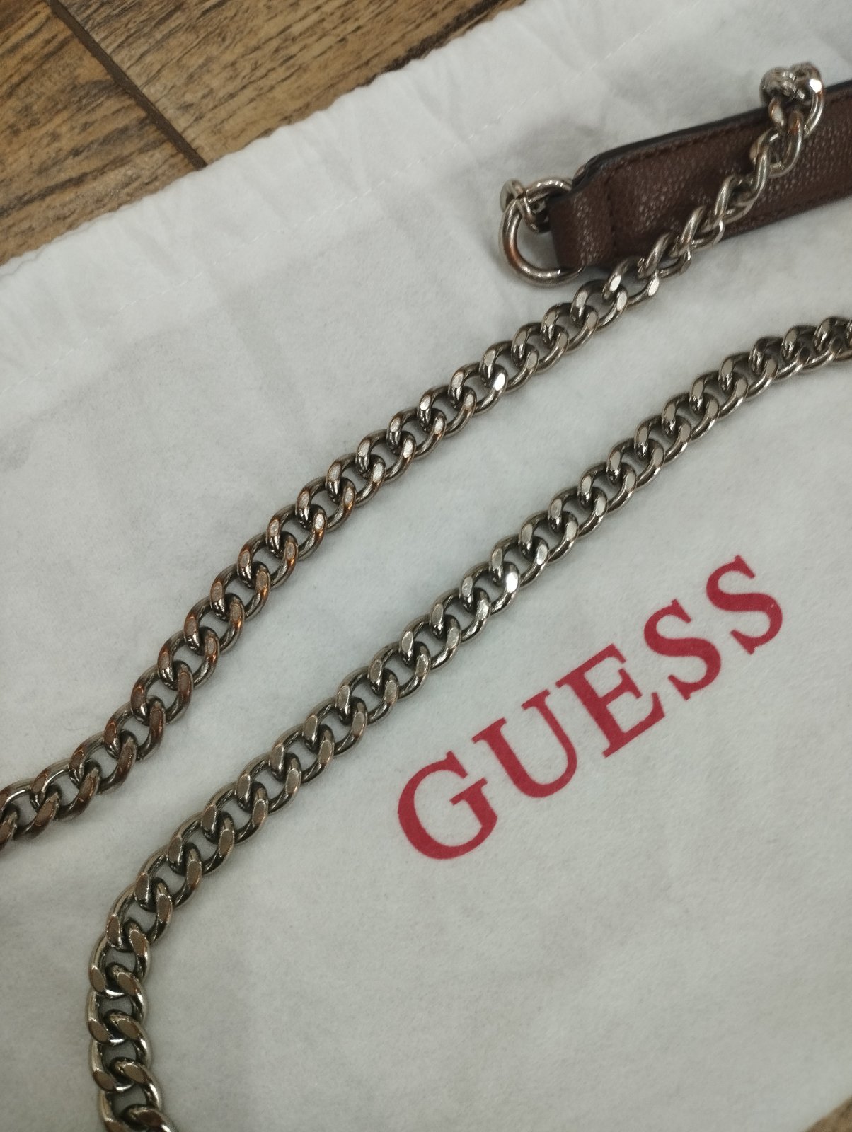 Originál Guess kabelka spolu s dust-bagom. Mala som ju len raz. Bola by ako nová. Skladovaním retiazka mierne zmenila farbu (posledná fotka). Pri nosení nevidno. Kupovala som ju v akcii za 109€, posuniem za tretinu.