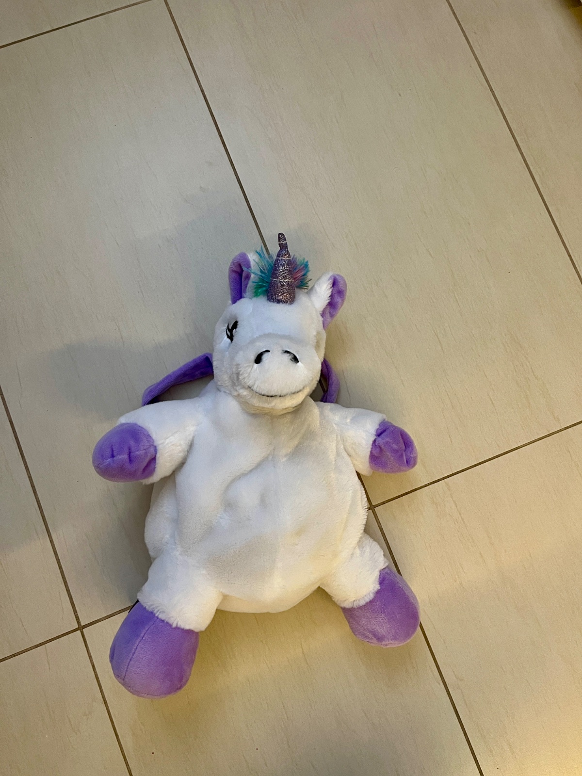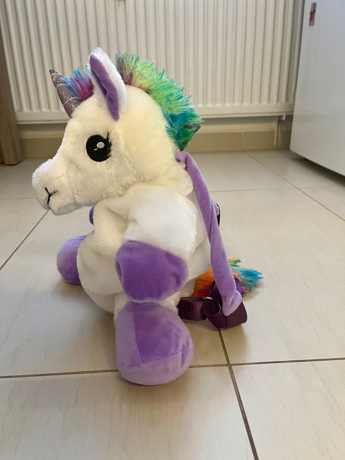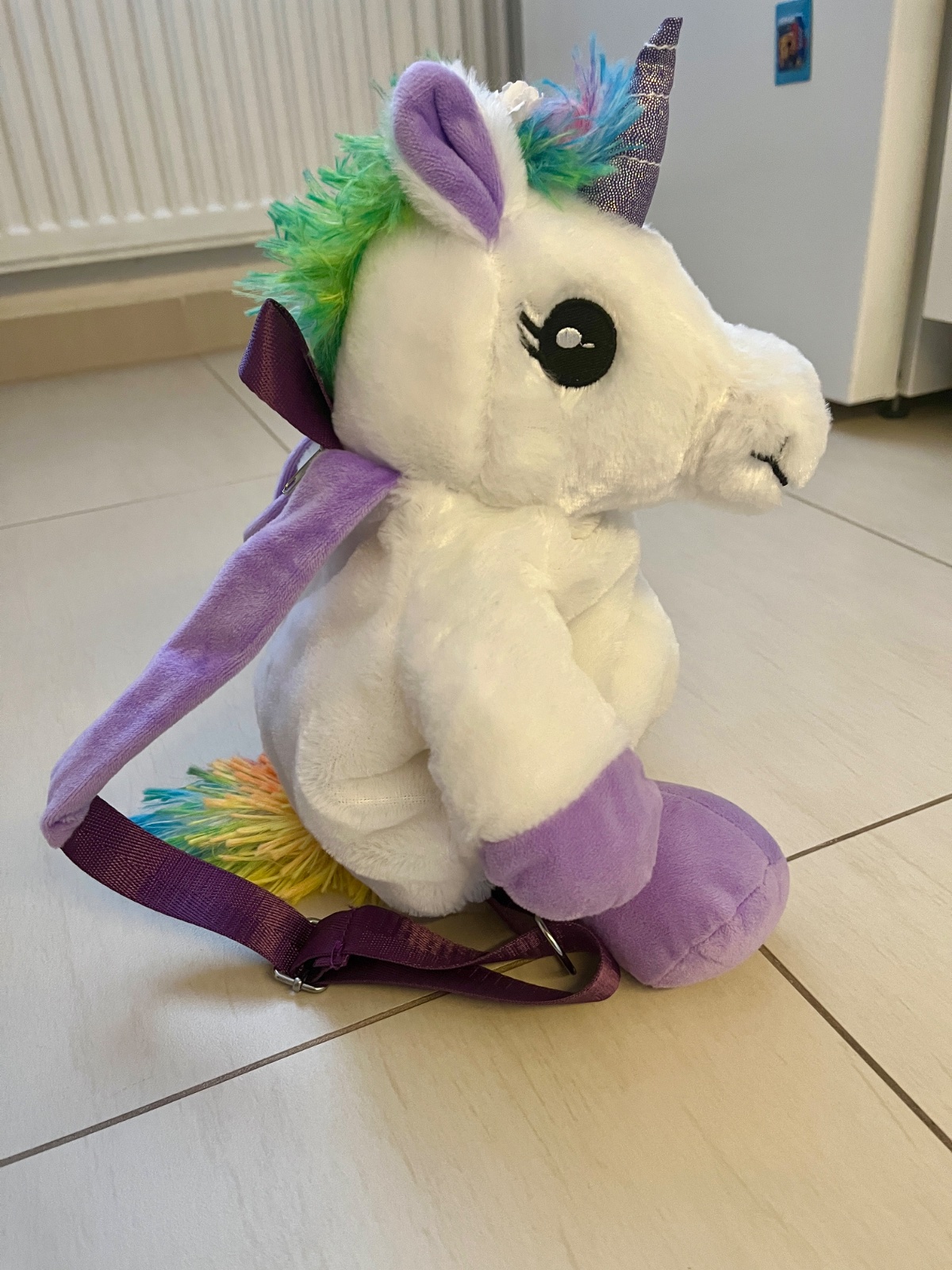 Predam raz pouzity krasny ruksacik jednorozec. Cena 4 eura + posta