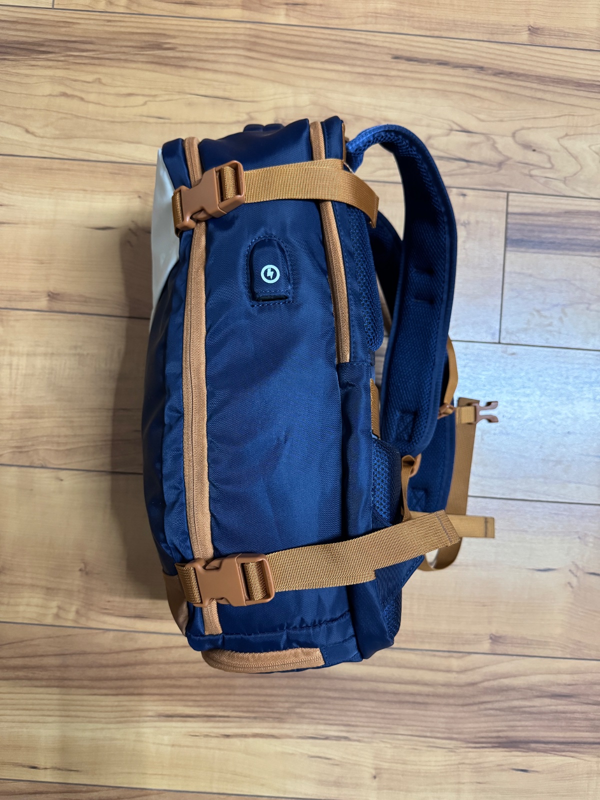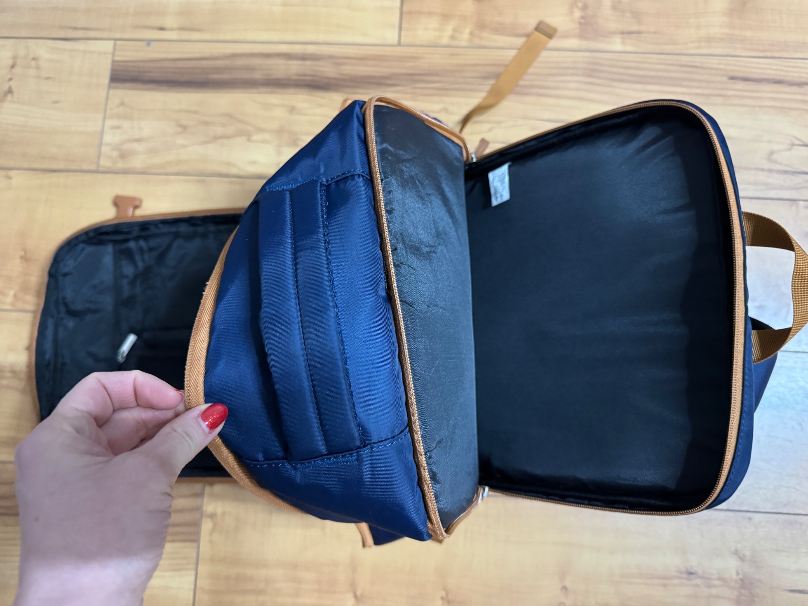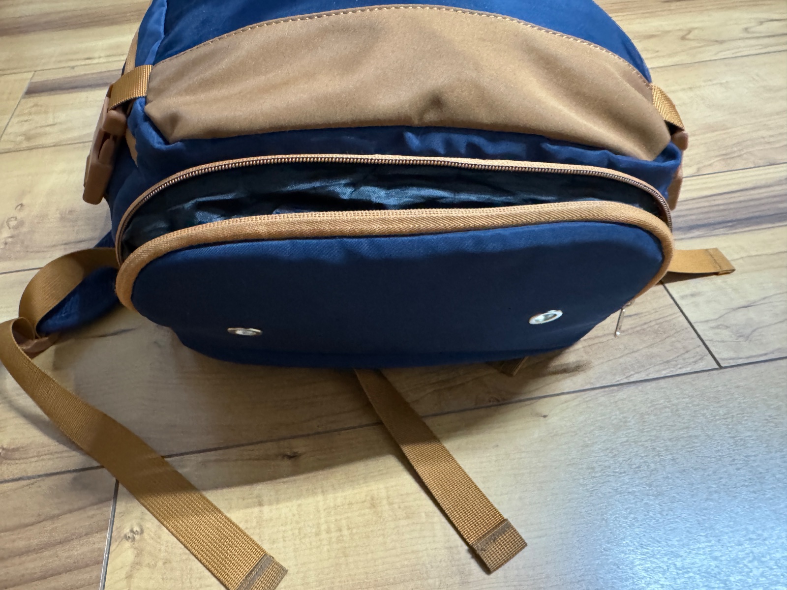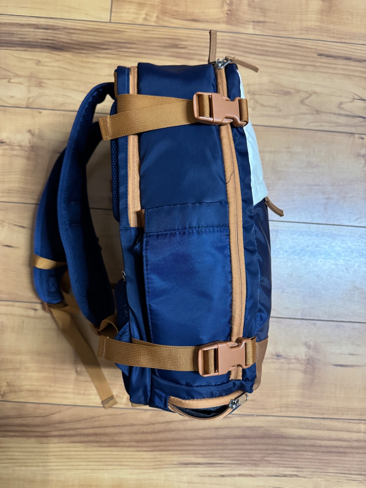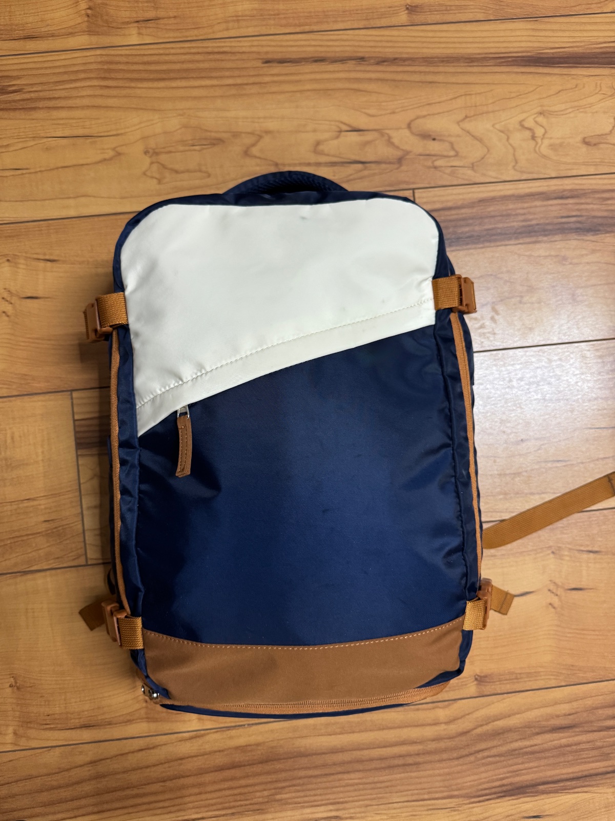 Batoh bol použitý párkrát, je v bezchybnom stave, akurát má jeden fliačik na bielej časti, neskúšala som odstraňovať. Farba o niečo tmavšia ako na fotkách.