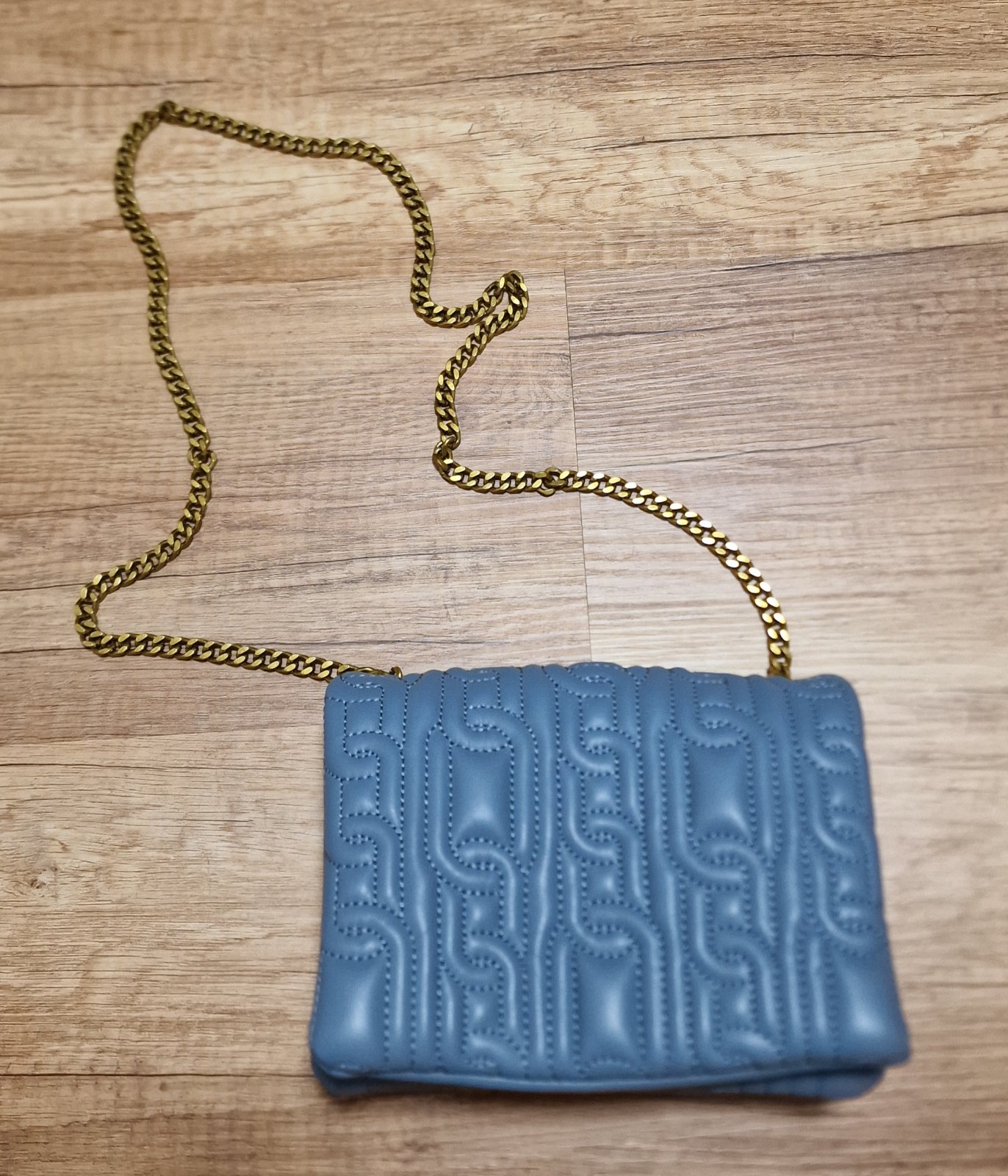 Predám novú crossbody kabelku Zara, modro-sivej farby, s ramienkom - zlatou retiazkou, prešívaná, krásna. Rozmery: 19 x 15 x 8 (D x Š x H). Cena 13 € plus poštovné.