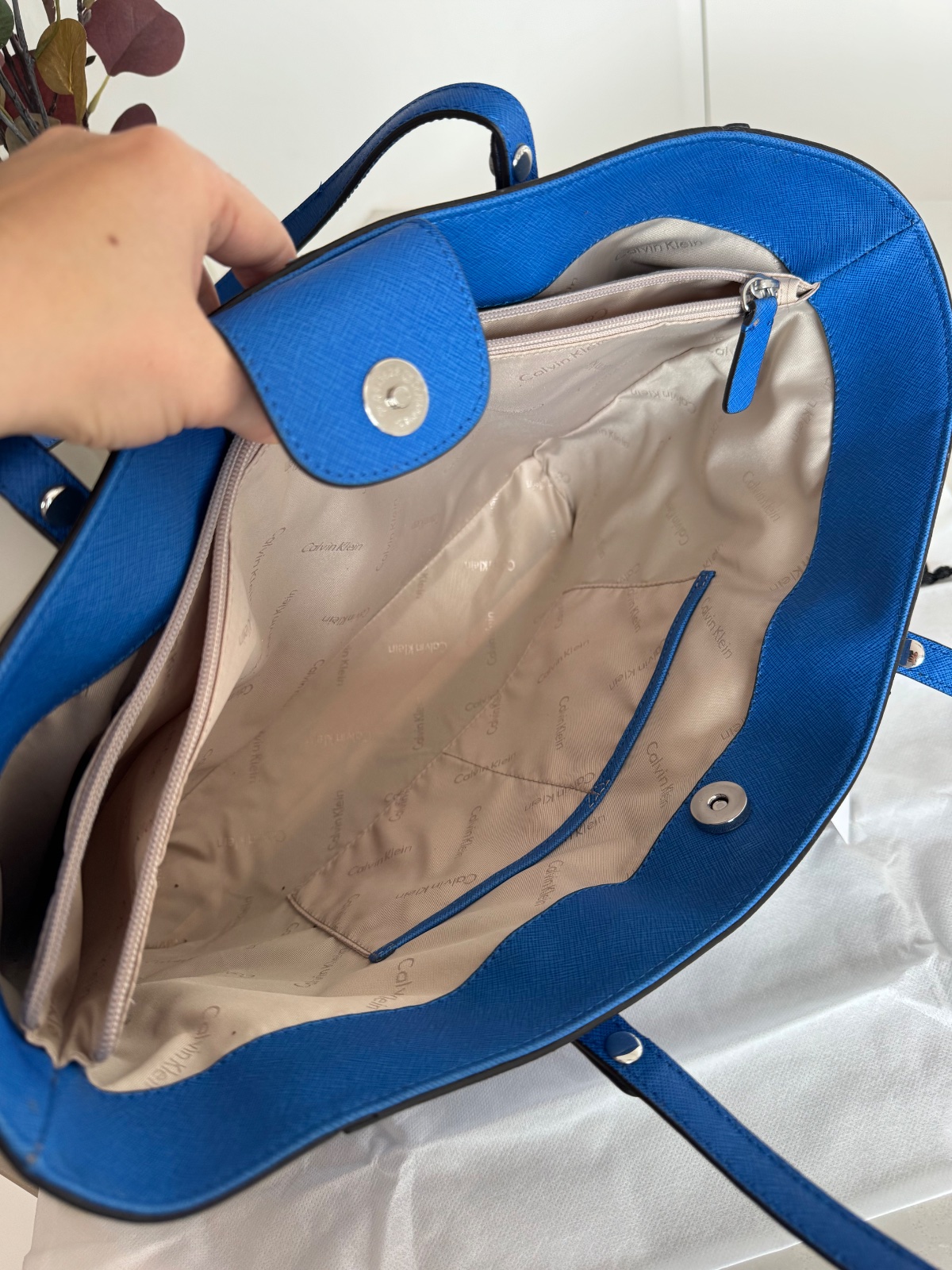 Predám priestrannú shopper kabelku originál značka Calvin Klein. Materiál koža. Rozmer: šírka v najširšej časti 41cm, výška 26cm. Kabelka je nová s visačkou a dustbagom.