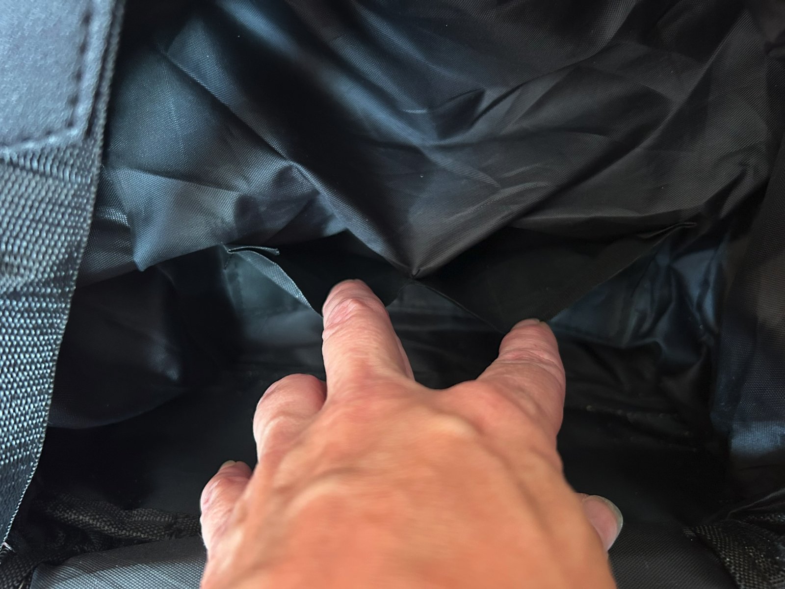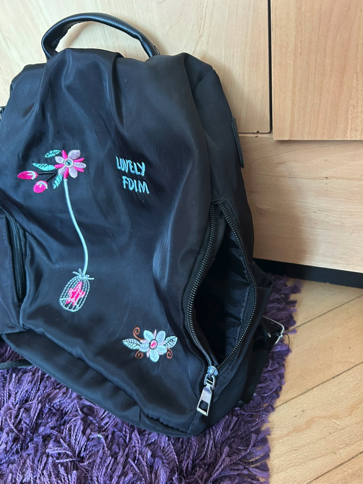 jediná vada na ruksačiku je, že je odtrhnutá časť, ktorá slúžila na uchytenie popruhu na pleco - viď posledné foto. Ale v podstate nepotrebná vec