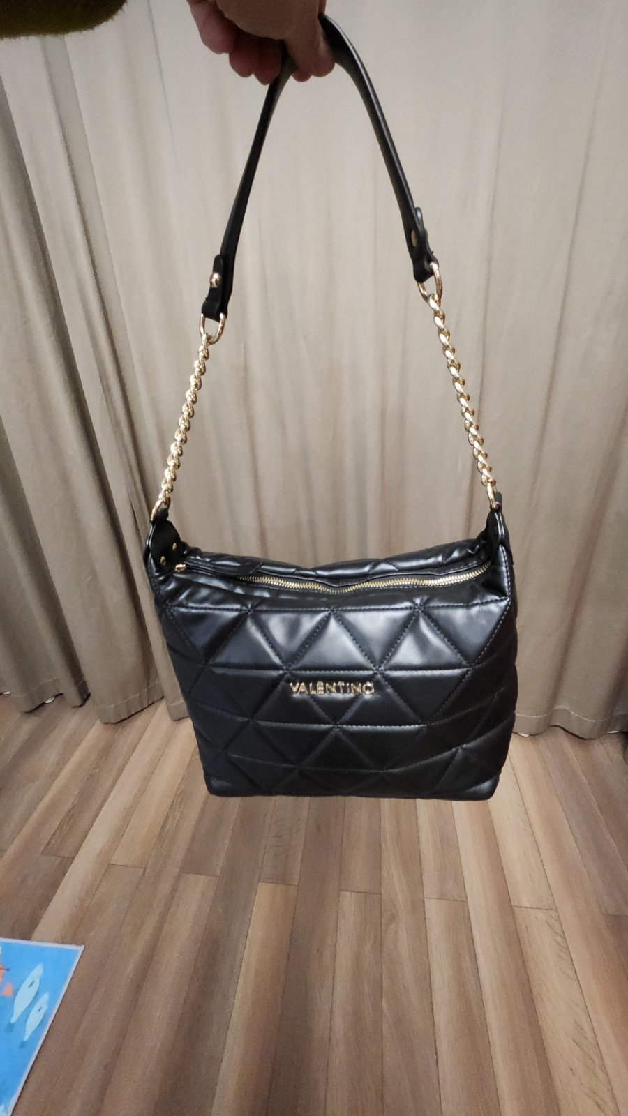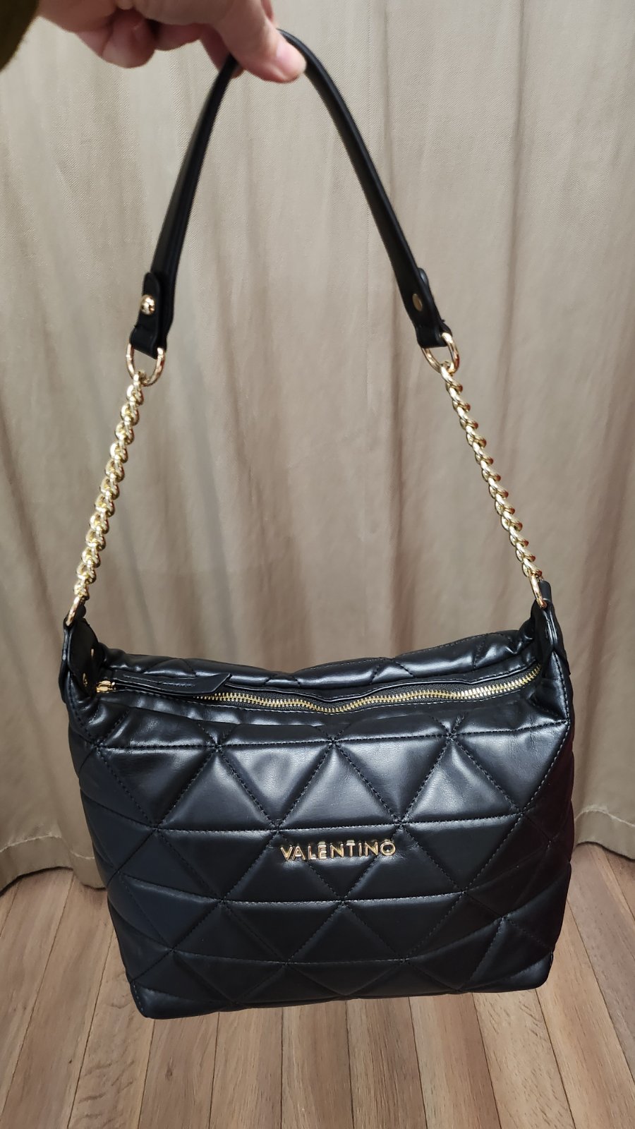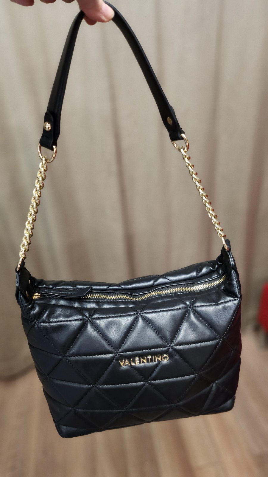 Prekrásna čierna prešívaná kabelka v strednej veľkosti. Rozmery: 36 x 25 cm. Dĺžka rúčky: 70 cm. Jednoprepážková, vnútri 3 vrecká, z toho jedno na zips.