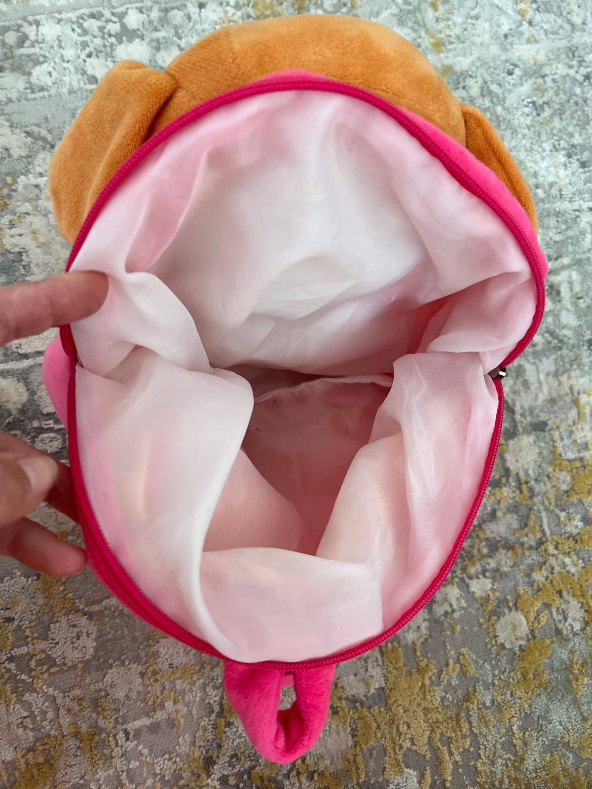 Mily makkucky ruksacik, na hranie alebo do skolky, vpredu na suchy zips sa da nieco prichytit, napr maslicka, kosticka. Posuvna cast jedna zlomena na jednom popruhu
