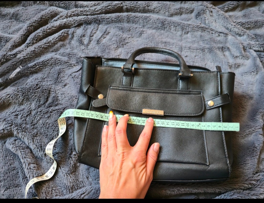 čierna kabelka do ruky, vpredu je vrecko, vnutri tiež, rozmery su na fotkach