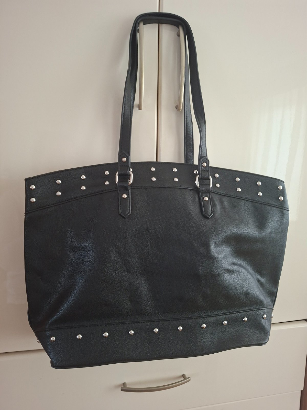 Cierna perleťova,kratsie uchytky al dlhá,zapinanie zips,velky prirstor*male bocne vnutorne vacky. CccJeniffer