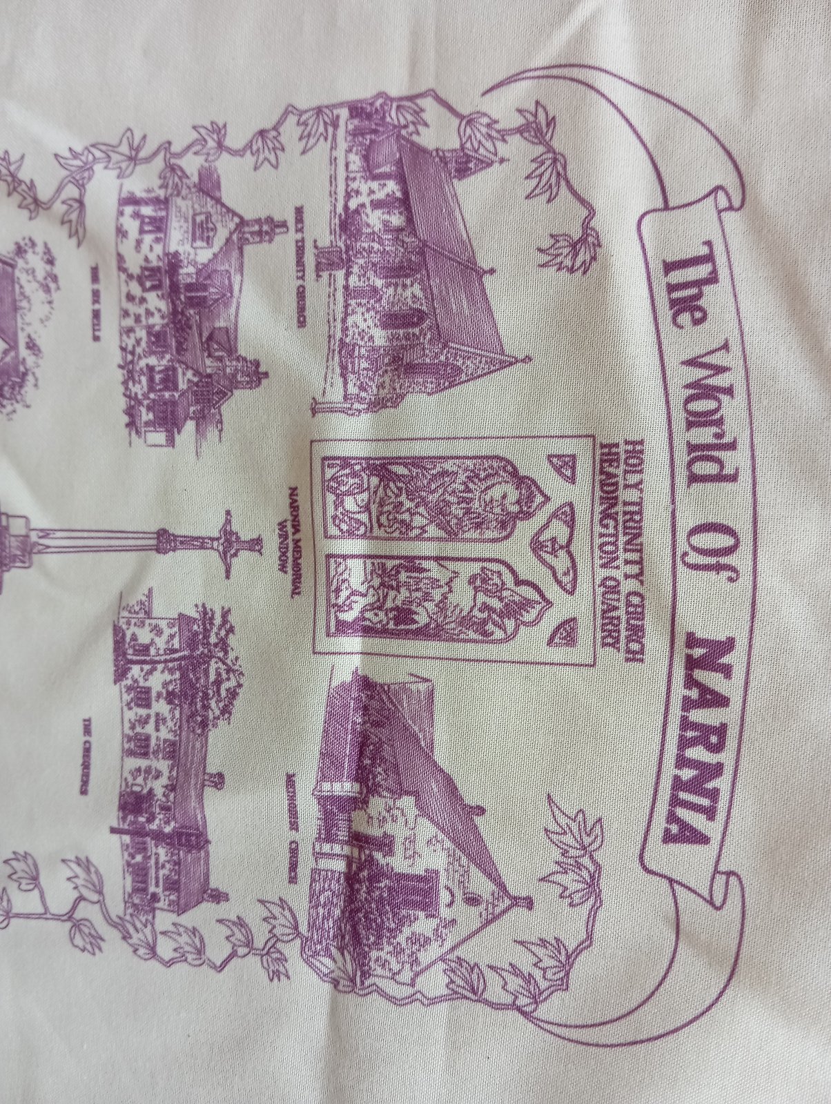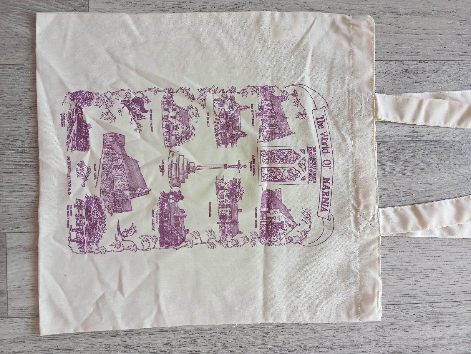 4. Smotanovobiela, béžovobiela bavlnená taška s potlačou Narnia a miestami pripomínajúcimi si C.S.Lewisa, autora kníh Kroniky Narnie. Kúpená v kostolíku Holy Trinity Church, Headington Quarry v Oxforde - tam je pochovaný.