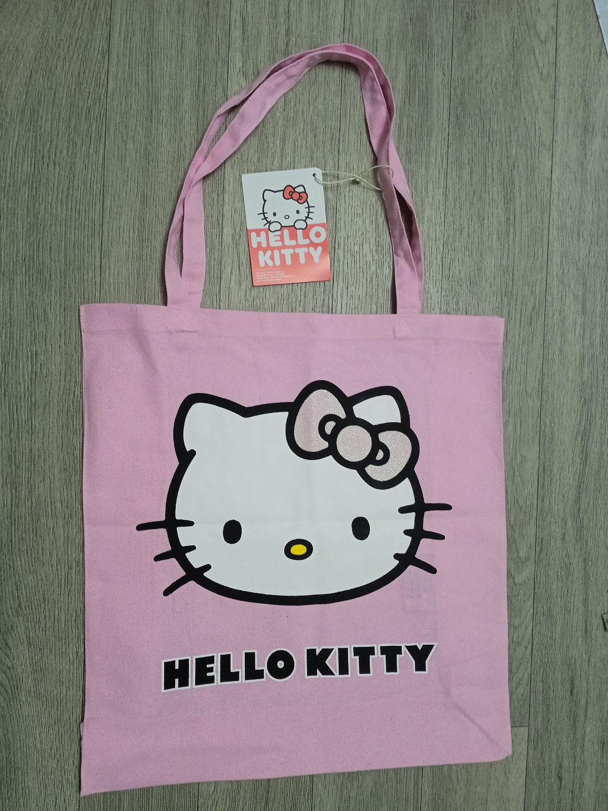 2. Bledoružová textilná, látková bavlnená taška shopper bag Hello Kitty.