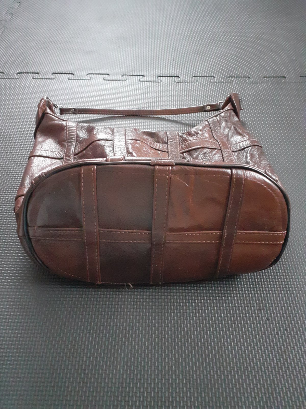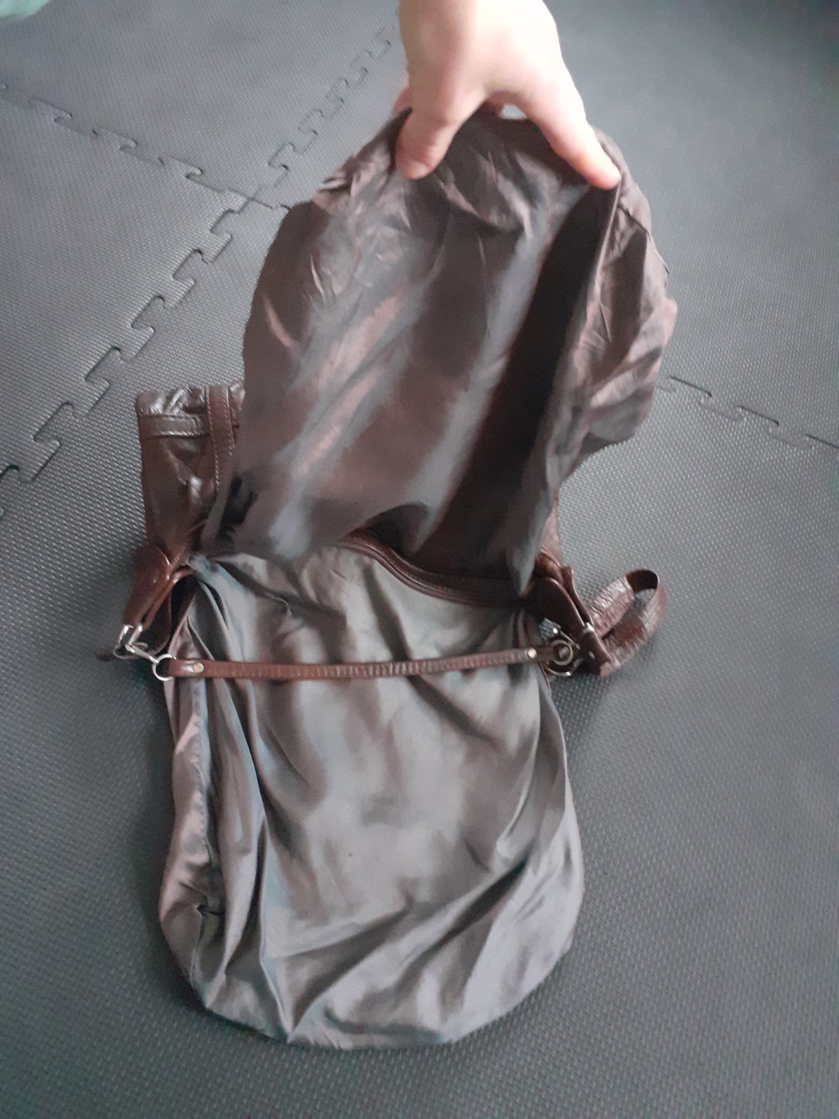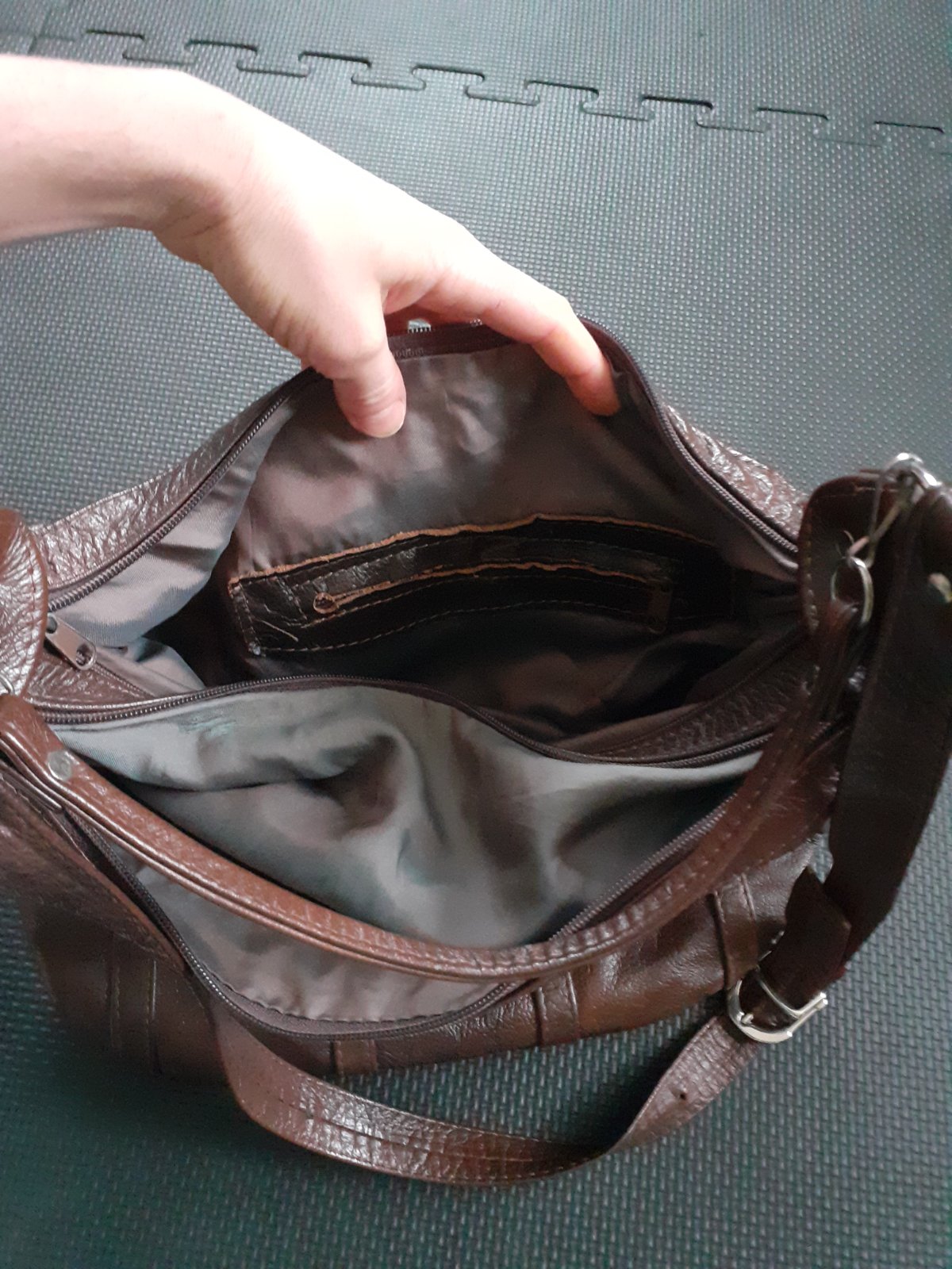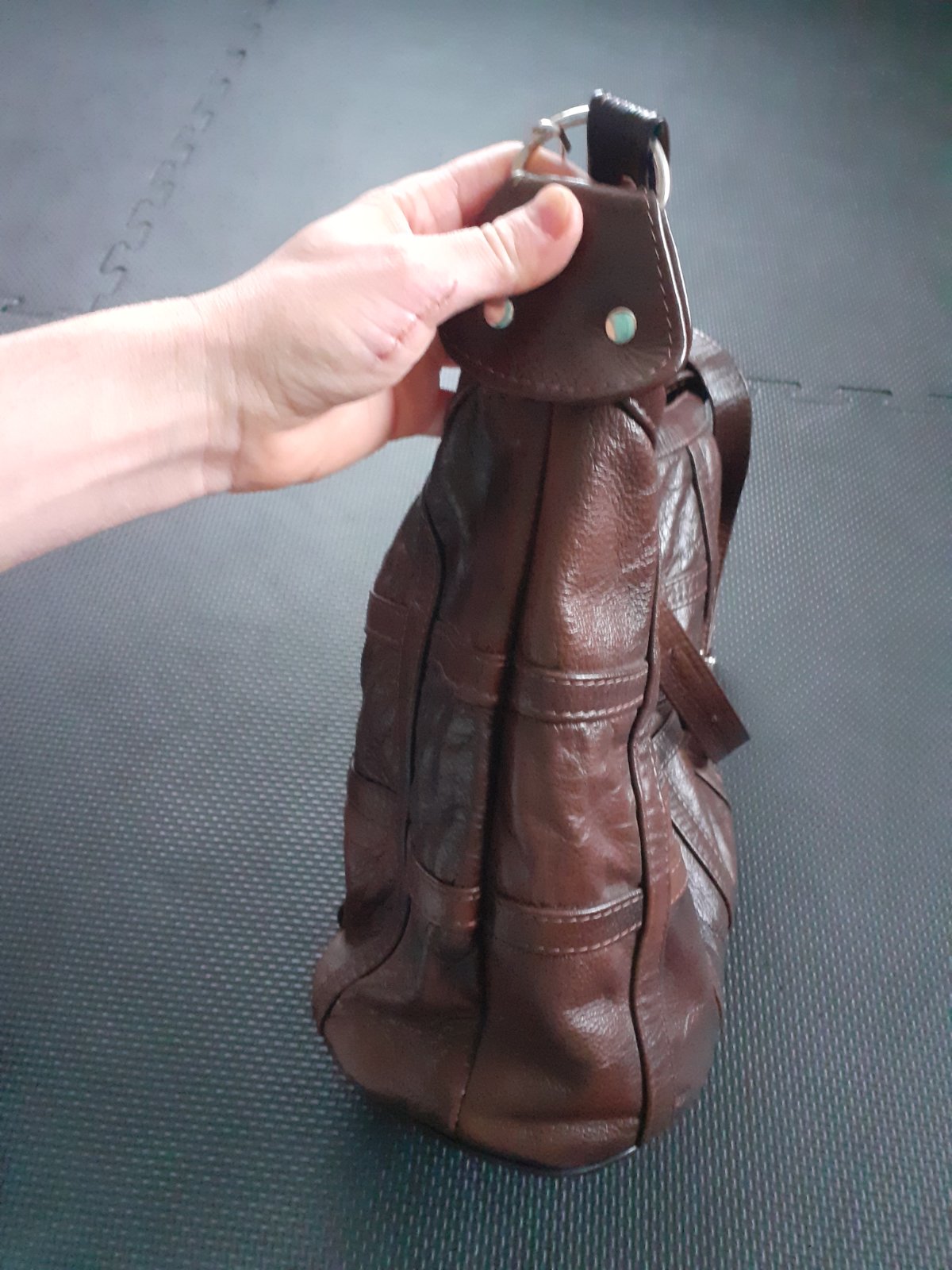 Kožená veľká hnedá kabelka so zipsami s podšívkou