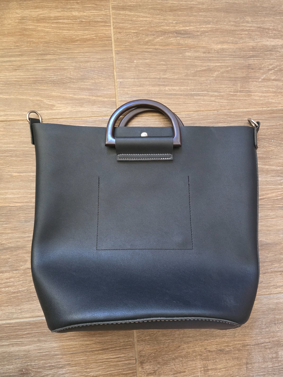 farba: jedna strana biela, druhá čierna so strieborným kovaním odopínateľný dĺžkovo nastaviteľný dlhý popruh + uško do ruky veľmi štýlový kúsok priemer kruhu 20 cm, hrúbka 9 cm materiál: neprav...