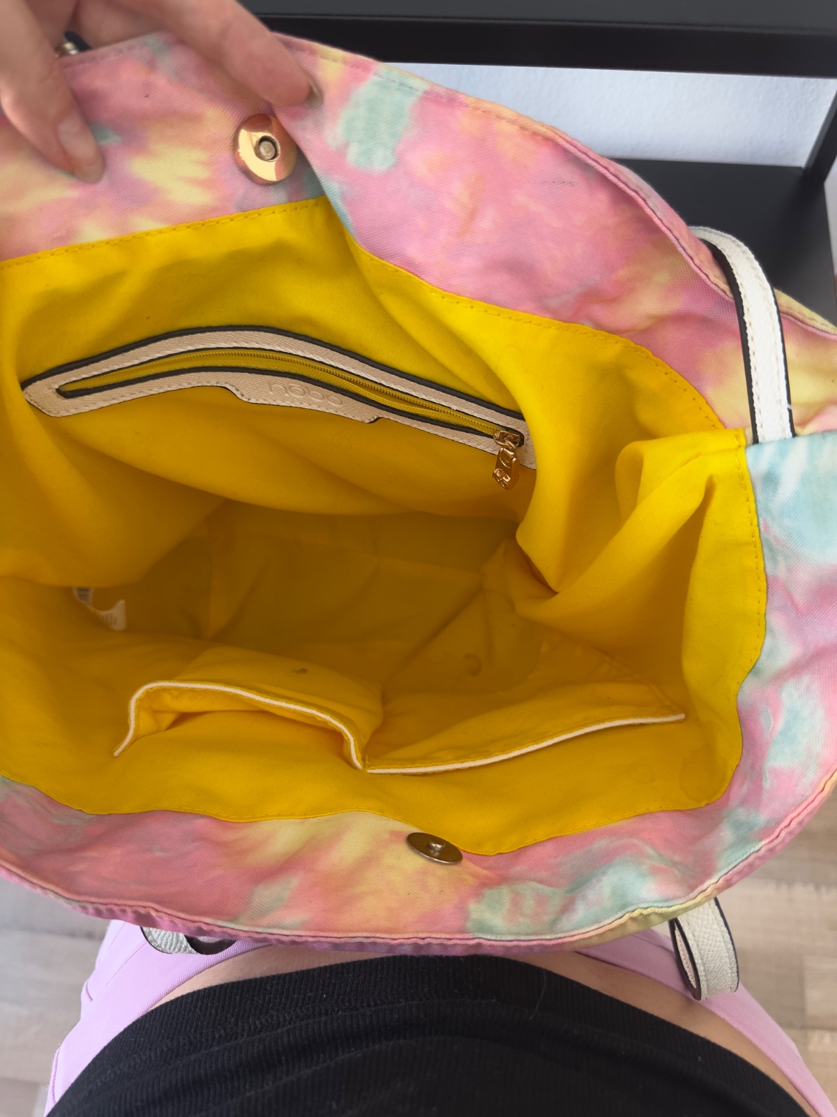 Posuniem veľkú kabelku v letných odtieňoch, nosená sezónu, super stav, akurát zvnútra sú fliačiky od oleja na opalovanie- zvnútra, nevidno. Neskúšala som vnútro čistiť. Inak super stav. Zapínanie na cvok a vo vnútri 3 priehradky, plus vo vnútri mini zipsovacie puzdierko pripevnené- šikovné riešenie napr. na klúče, mobil atď.