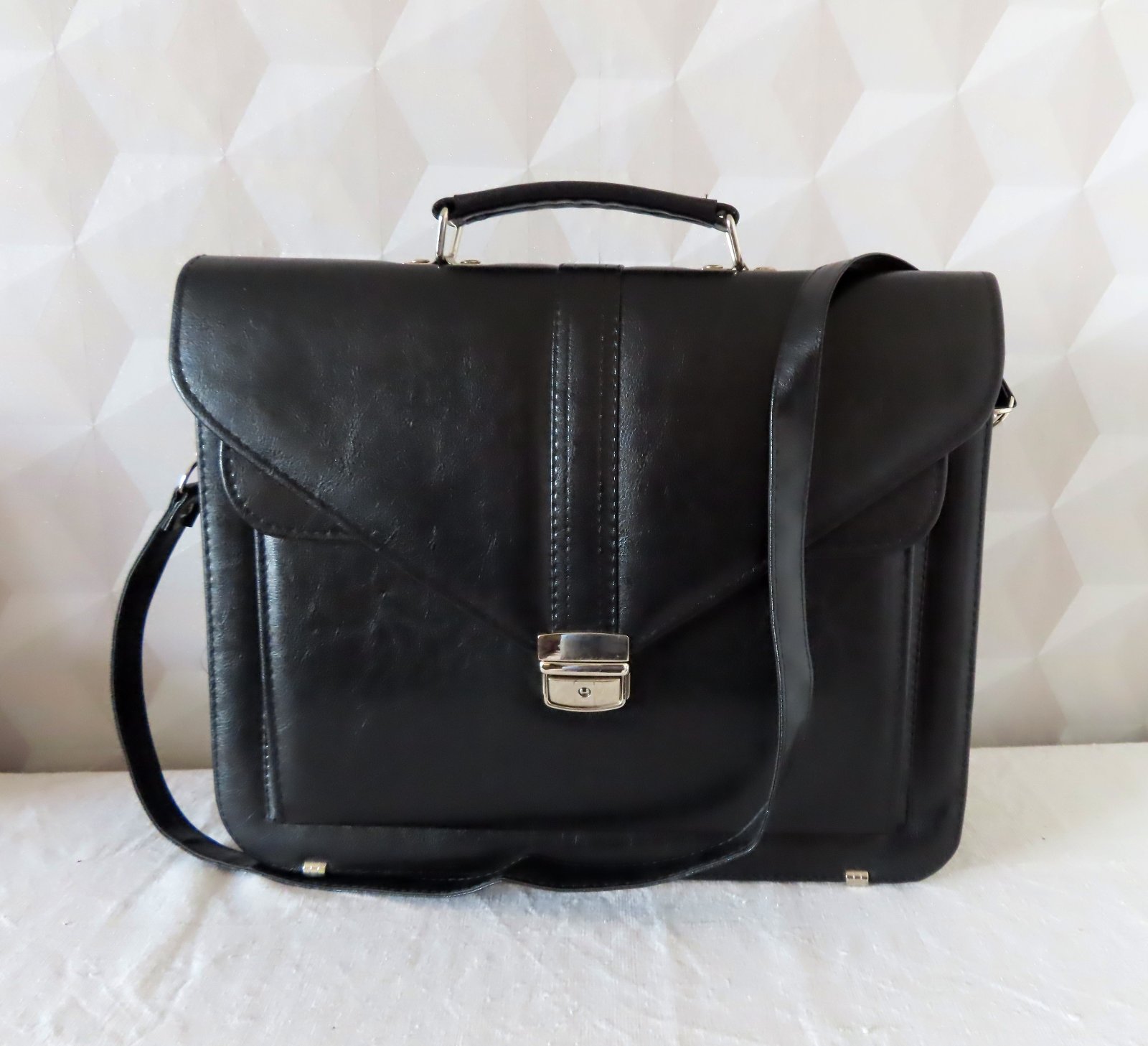 Elegantné aktovka s hlavným priestorom krytým chlopňou na zámok, s tromi oddelenými priestormi.