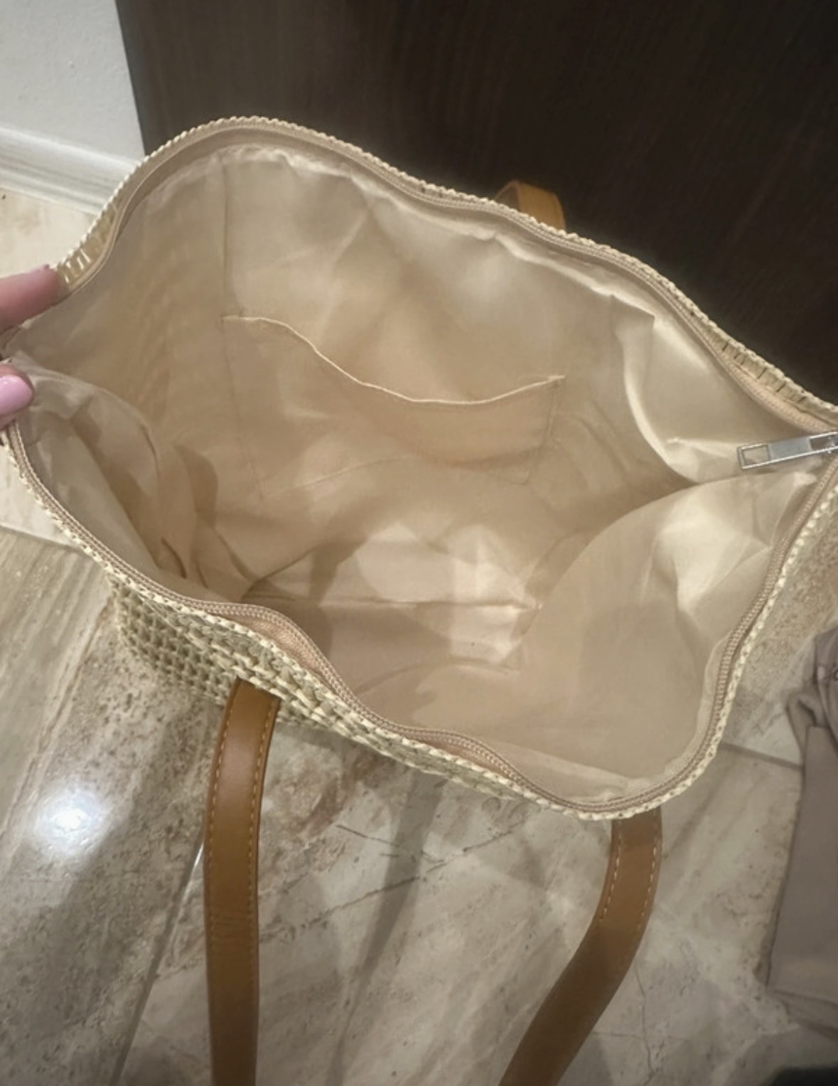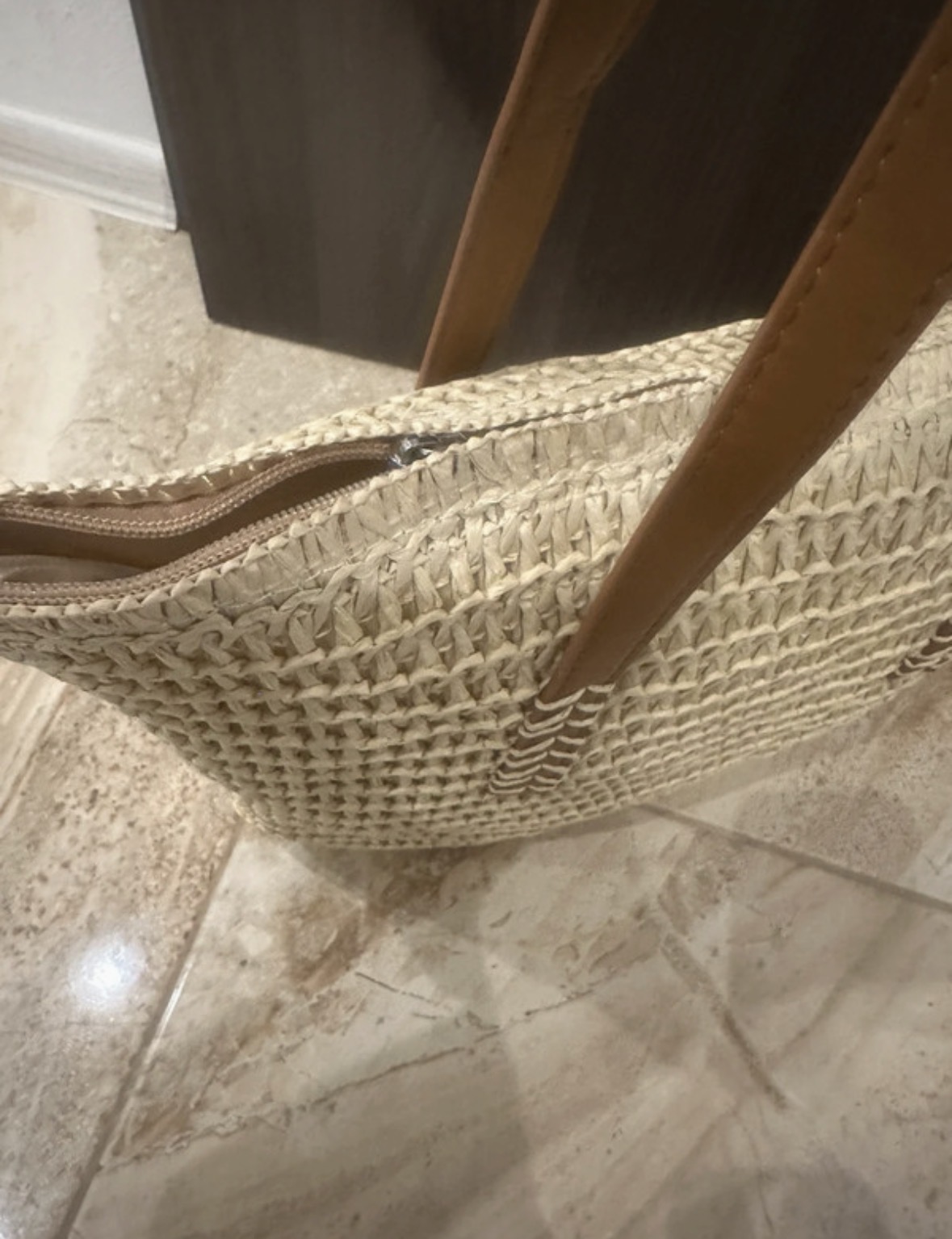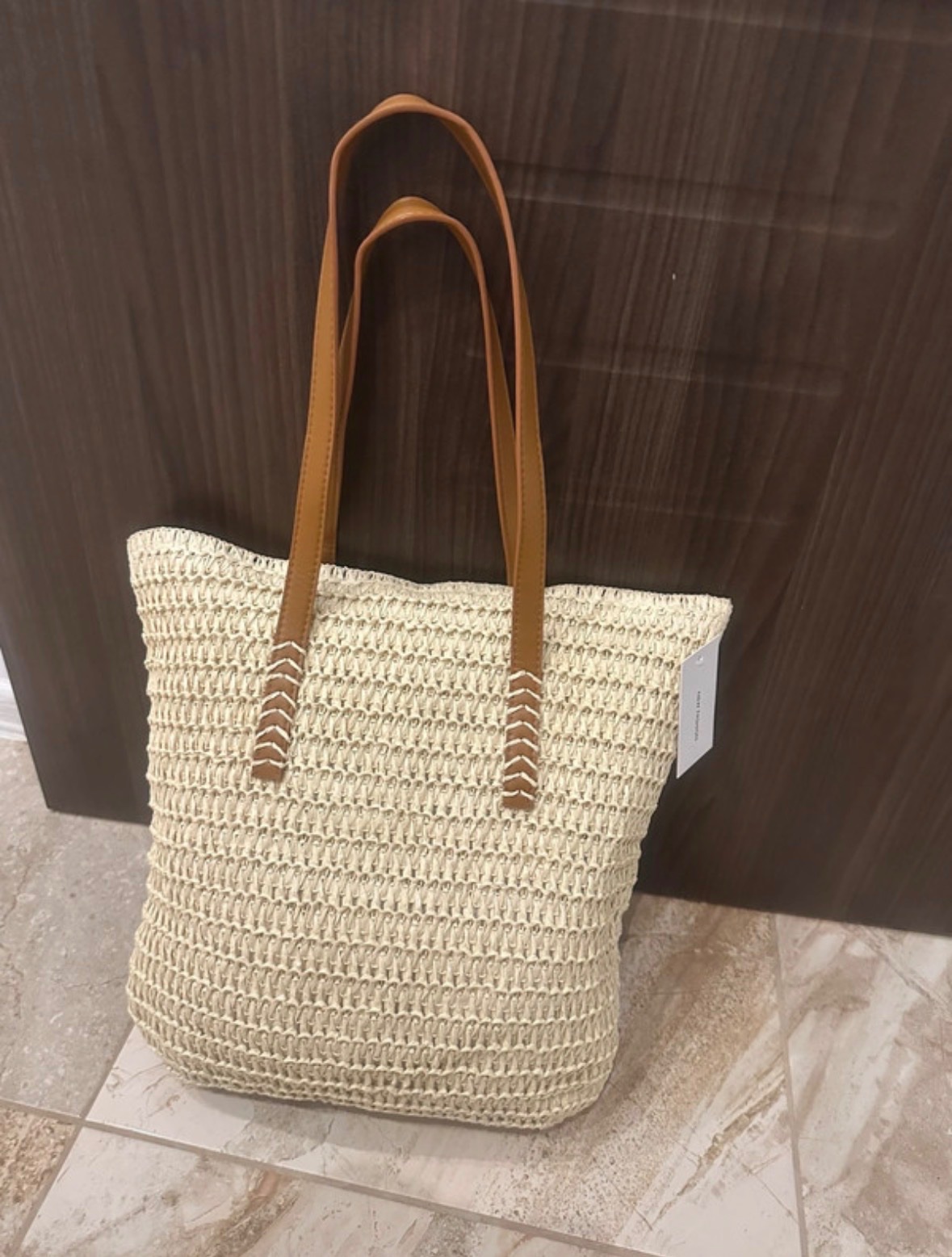 Raffia,faux leather panel