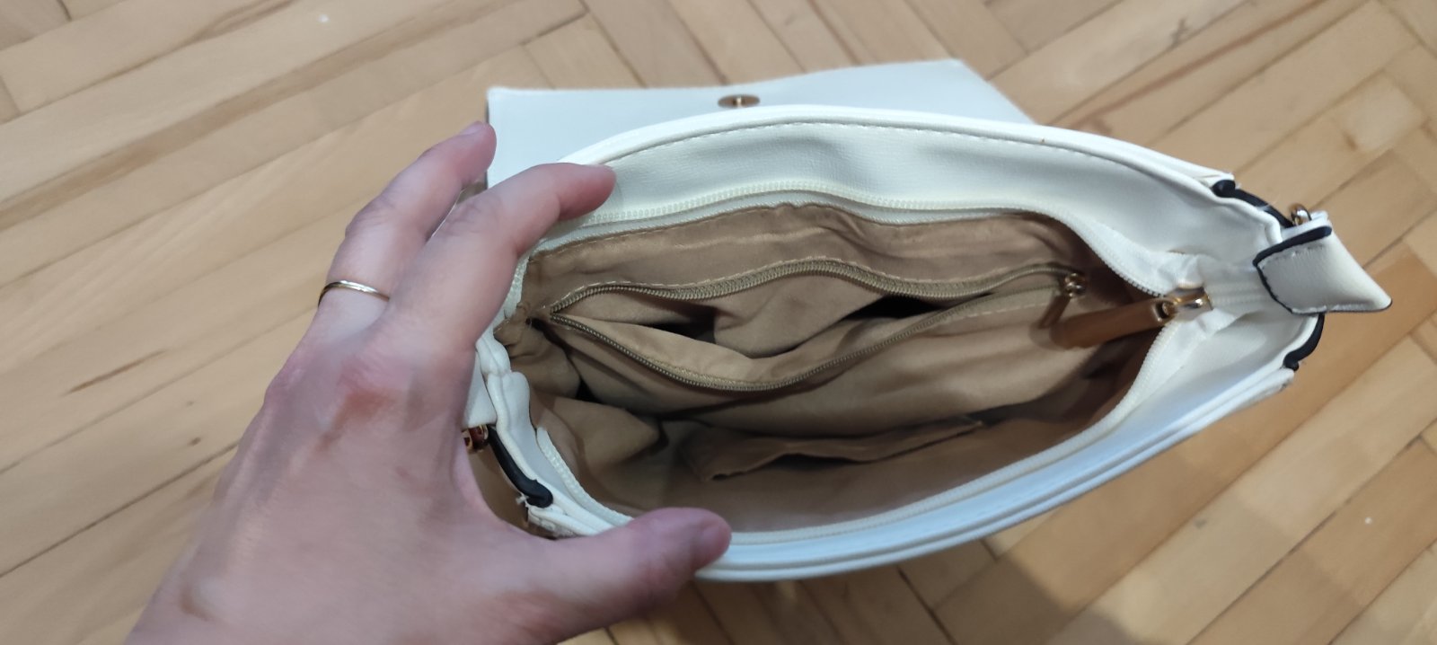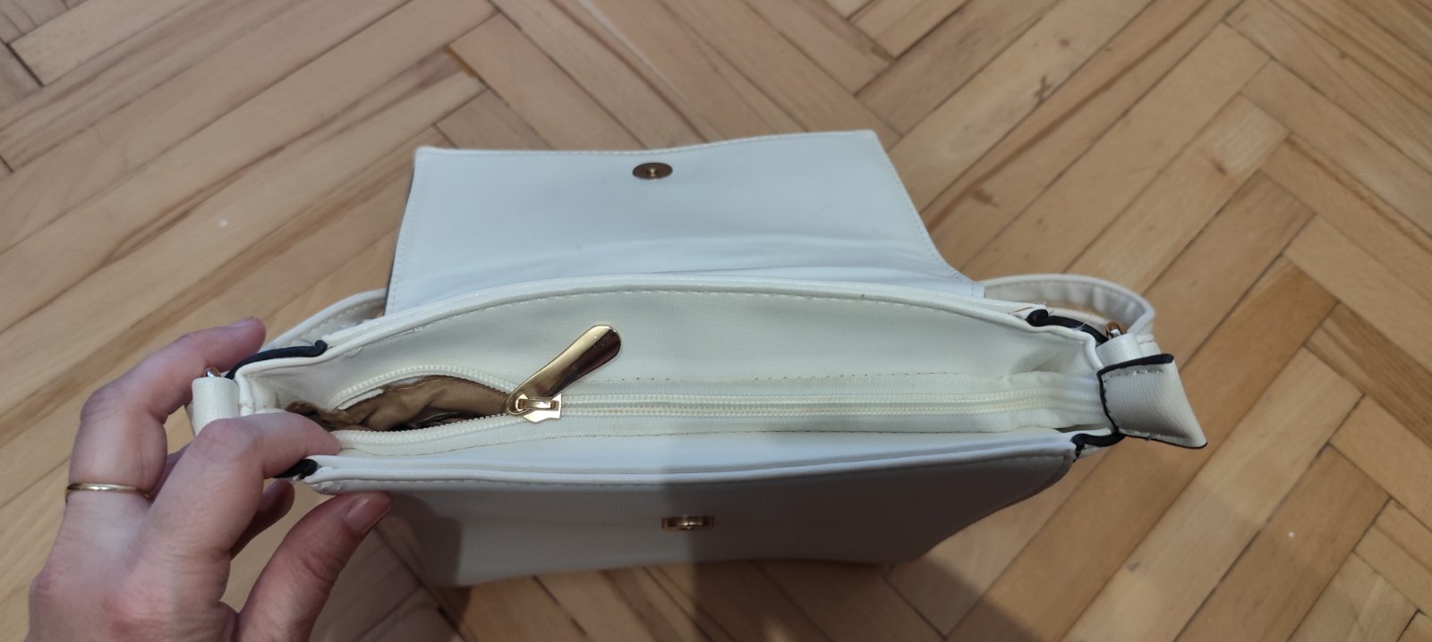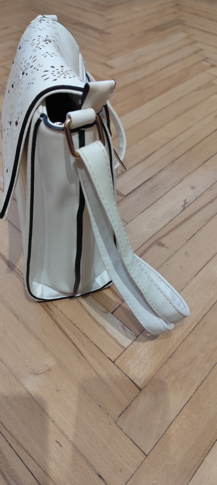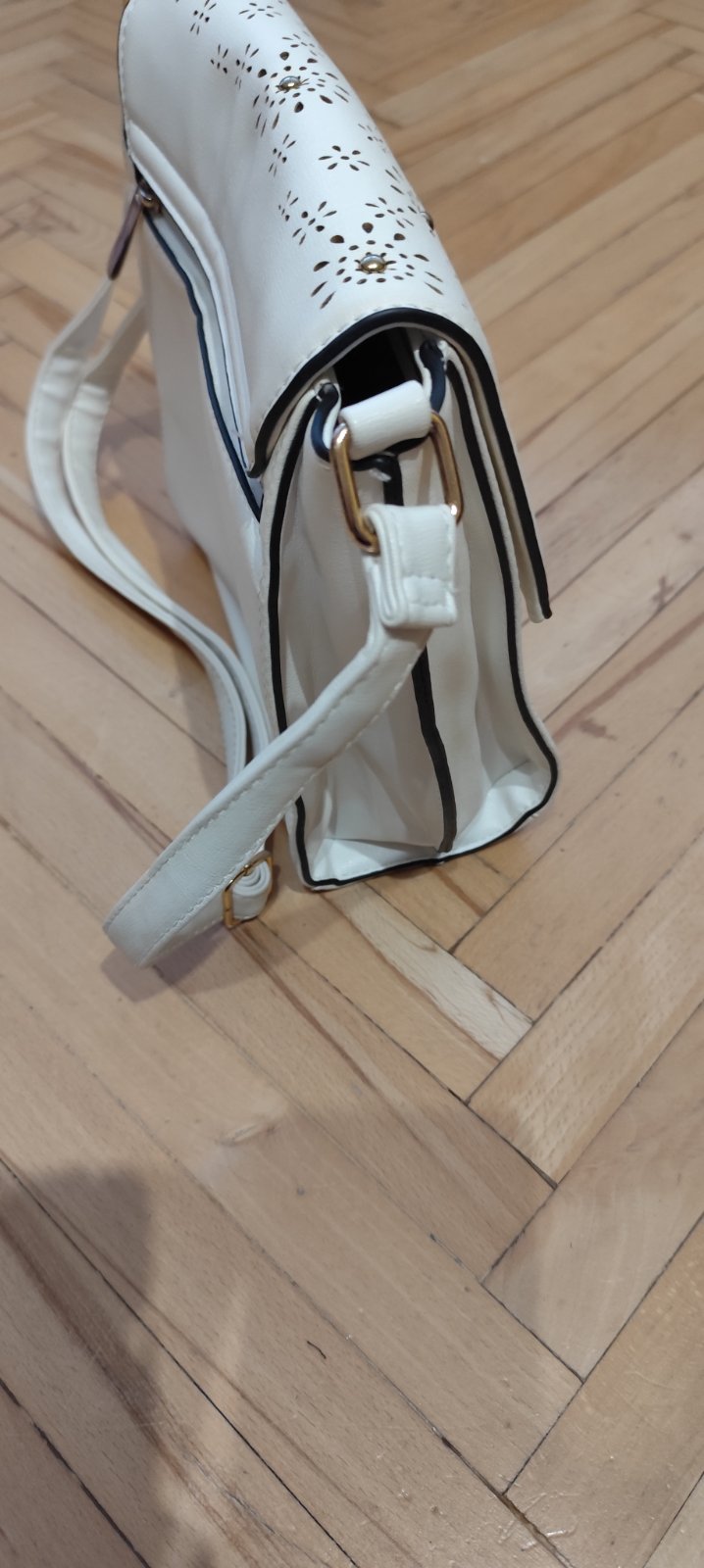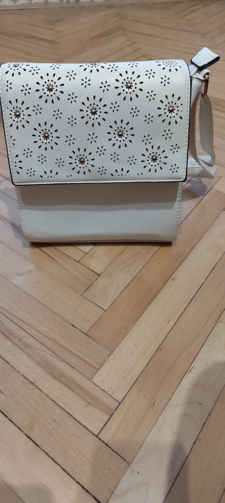 Predam peknu bielu kabelku do zlatymi doplnkami. Vzadu je maly fliacik, inak nevidim poskodenie.