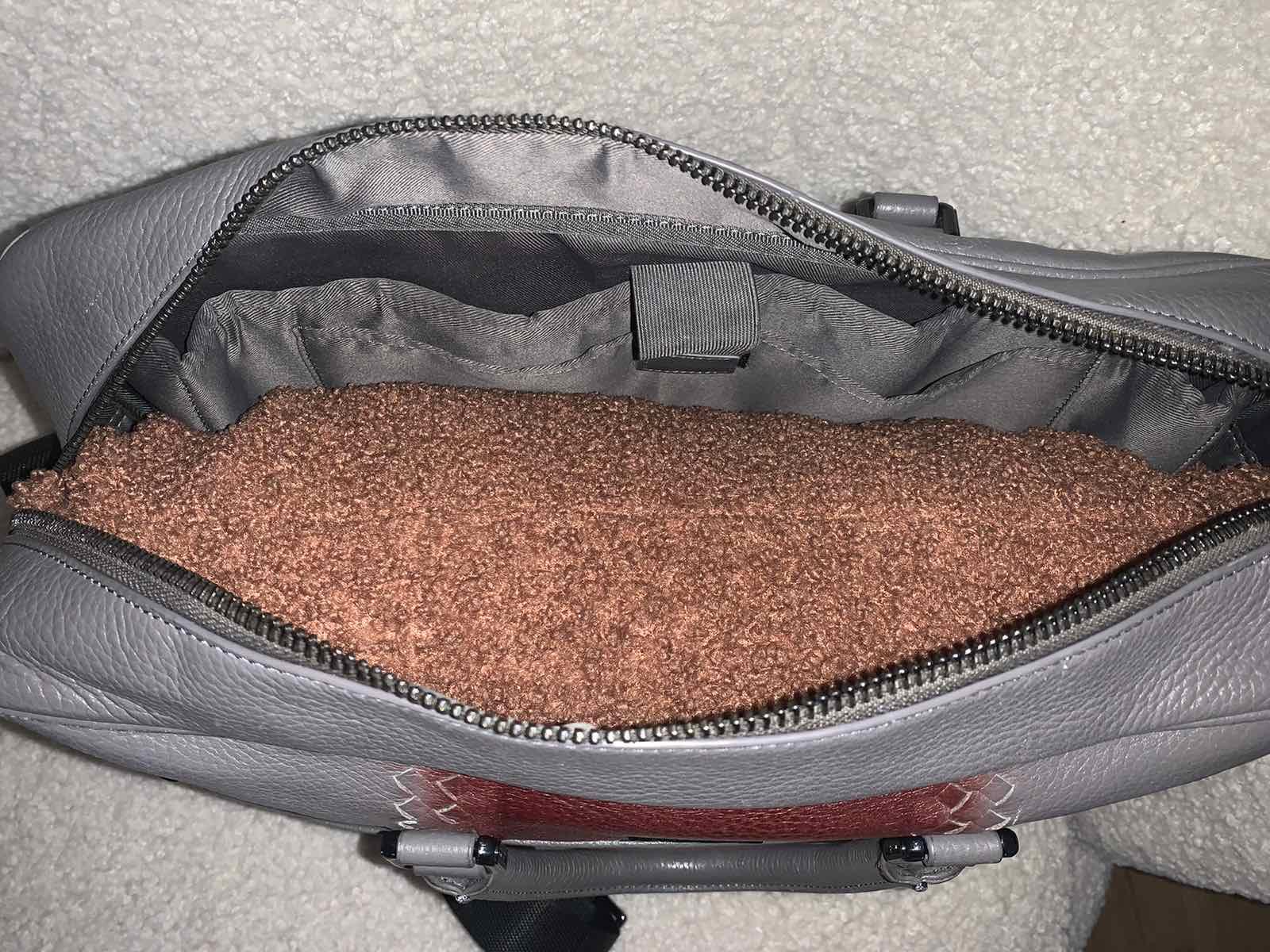 Kožená, unisex, pracovná na notebook,svetlo-seda hrubá koža s bordovou, drobné ošuchy v rohoch,inak výborný stav