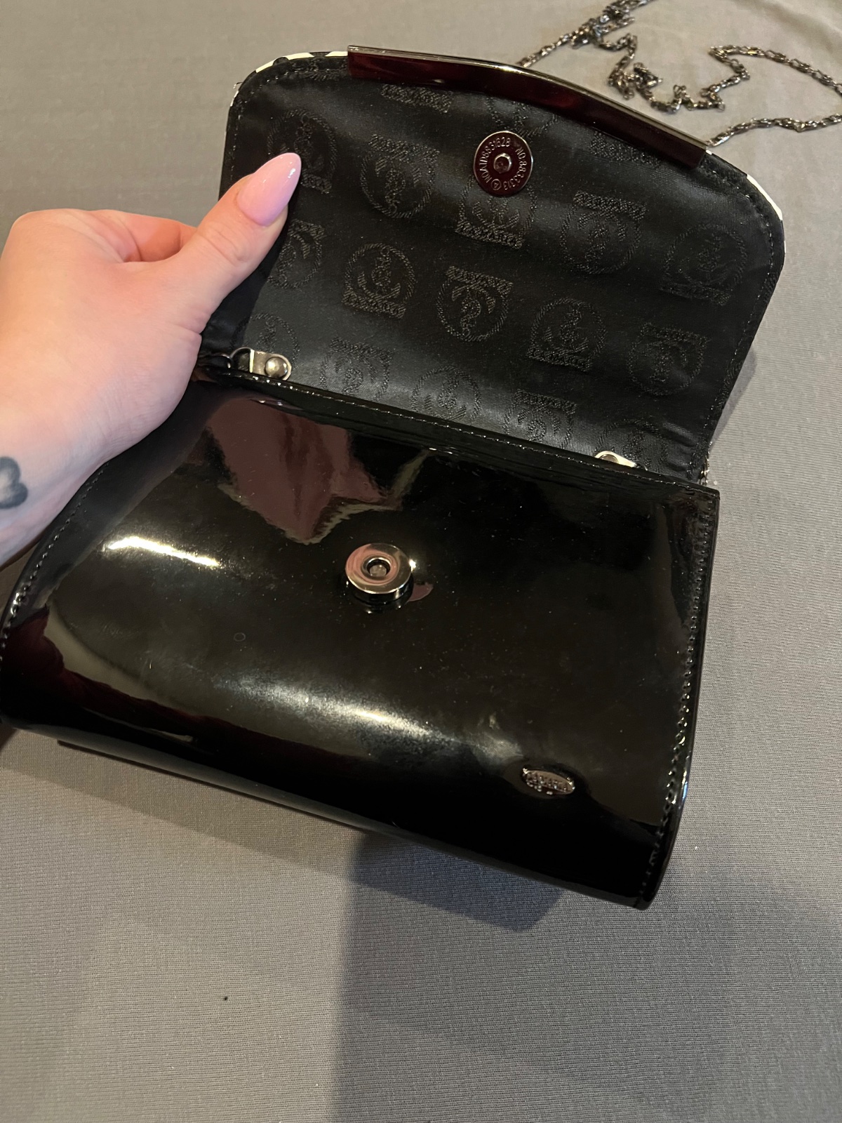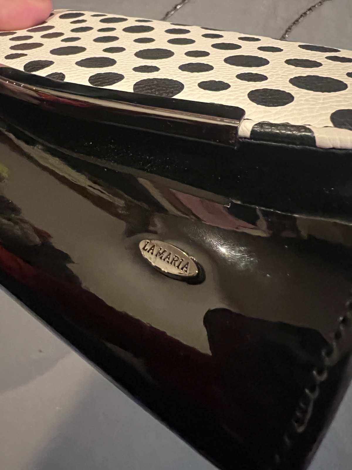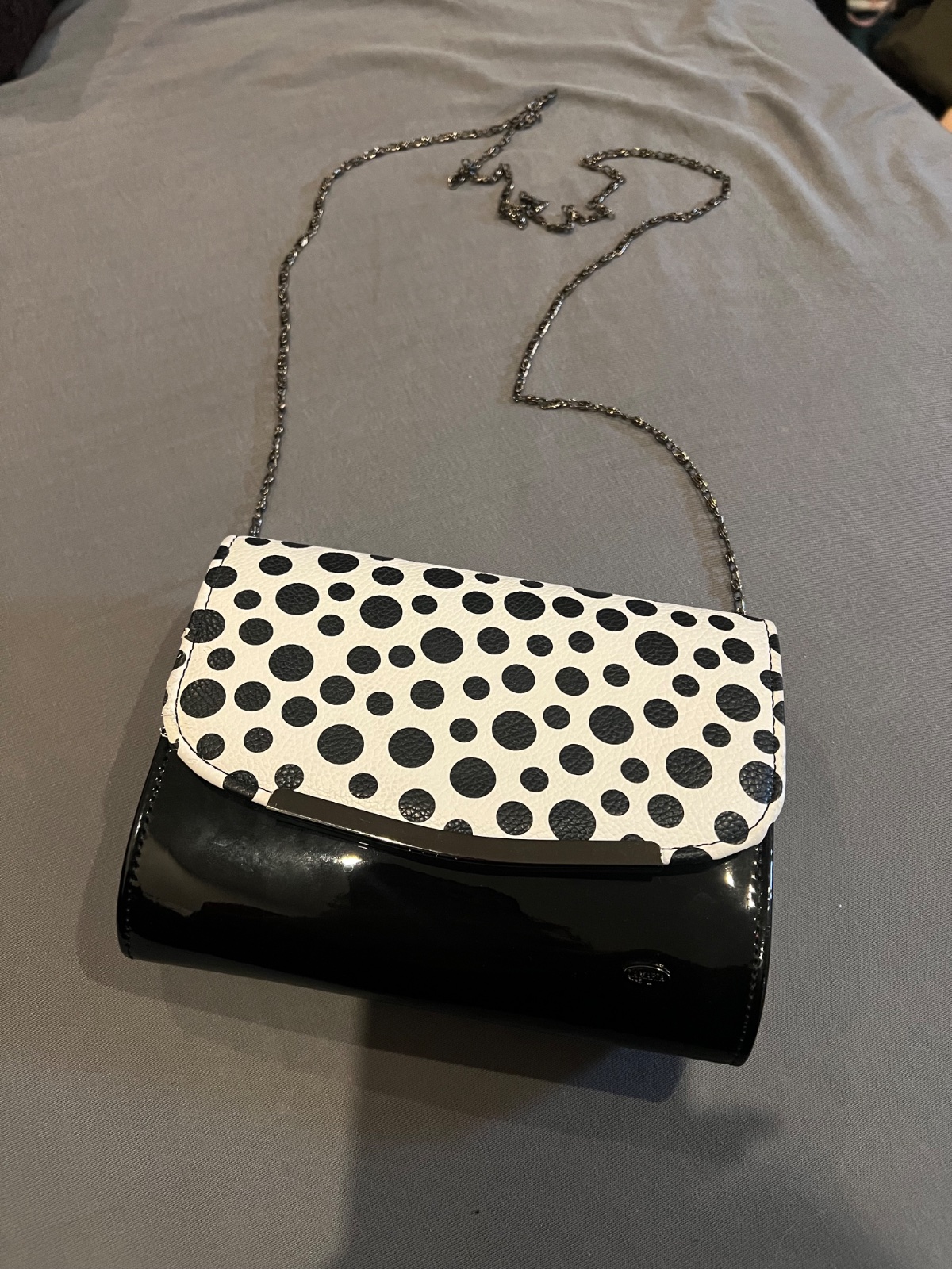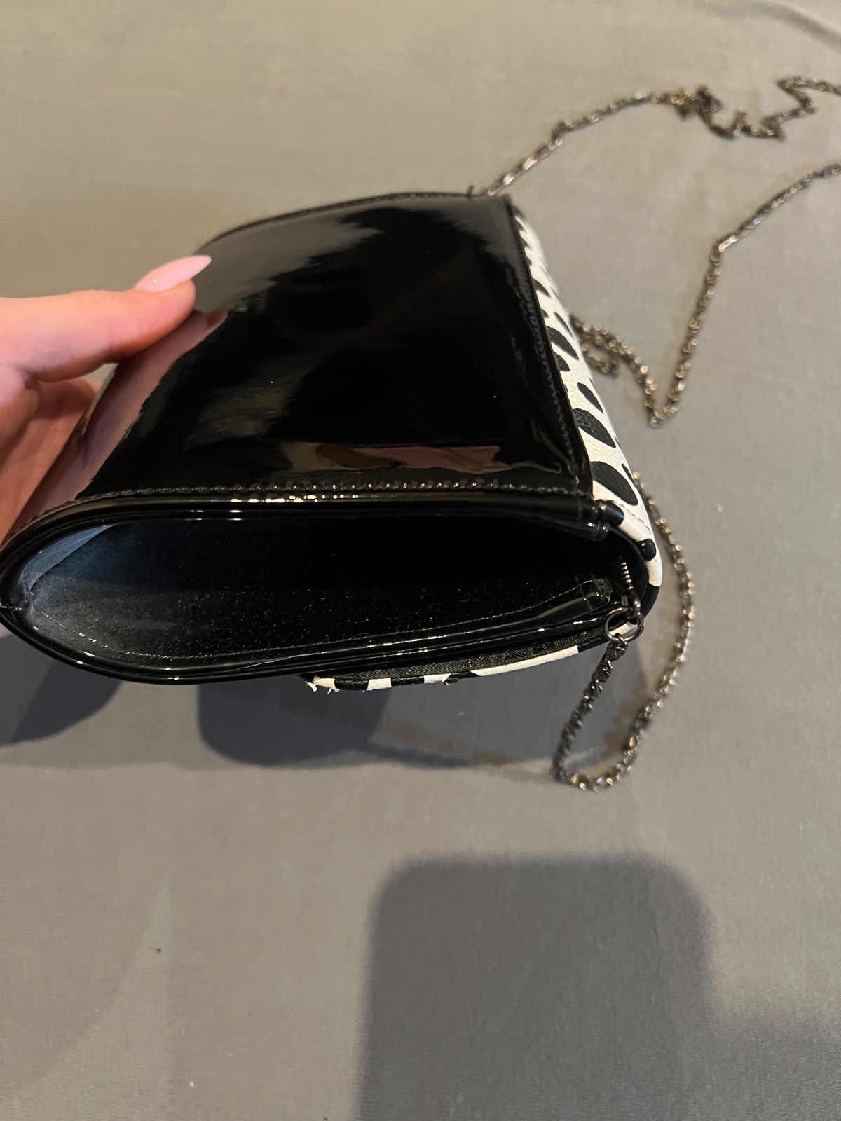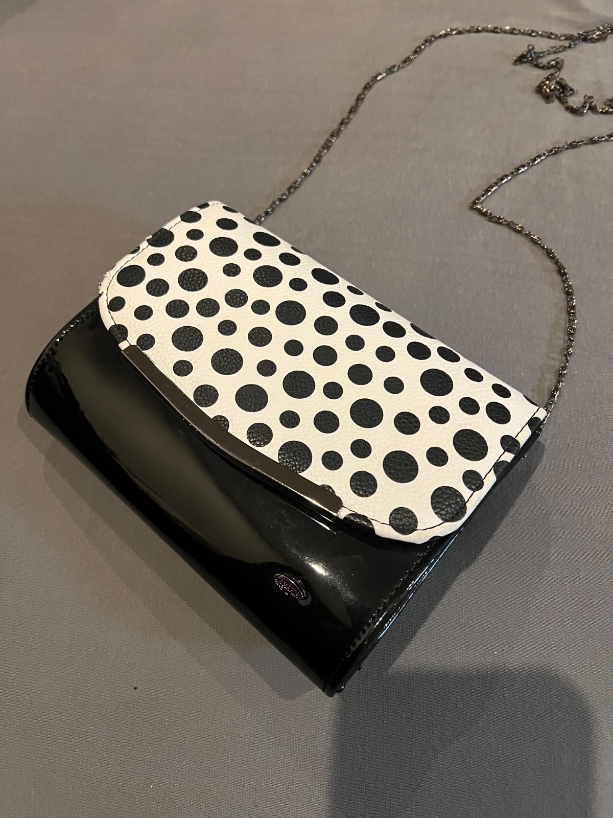 Dámska spoločenská kabelka lakovaná syntetika v krásnej čiernobielej kombinácii,teraz v zľave 50% pôvodná cena 19,90€