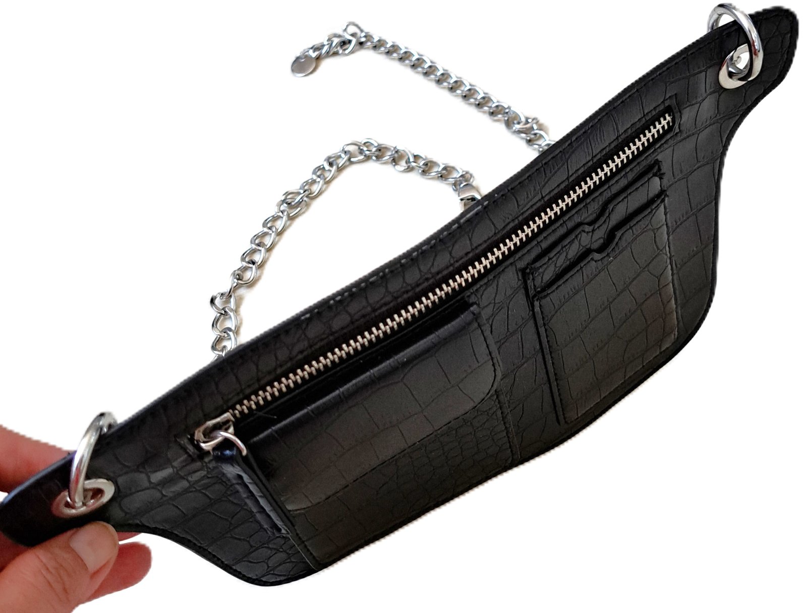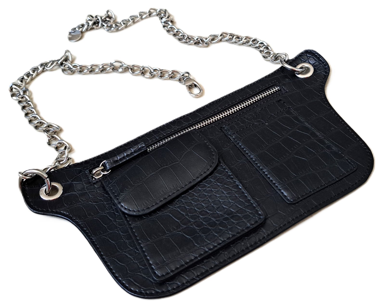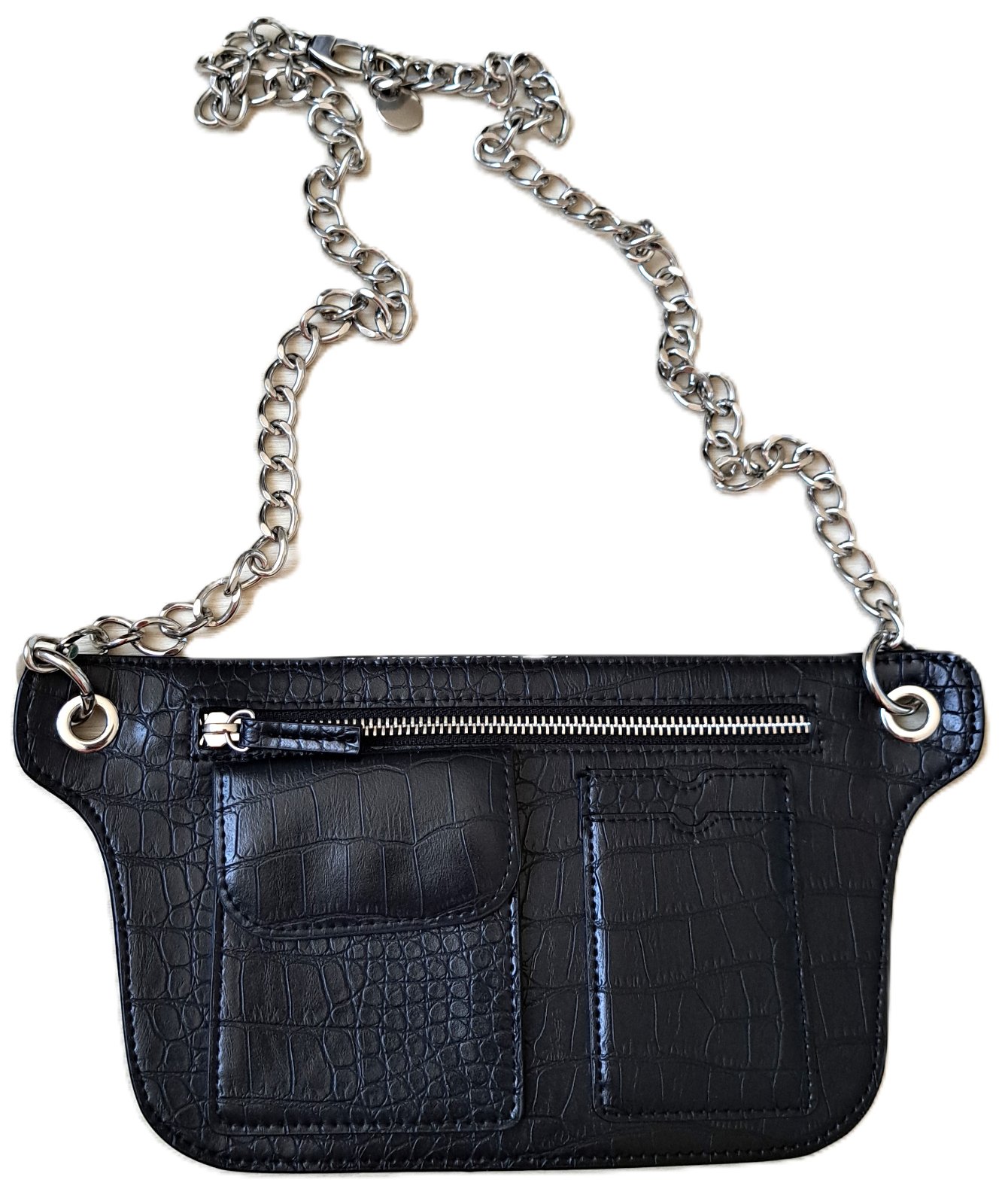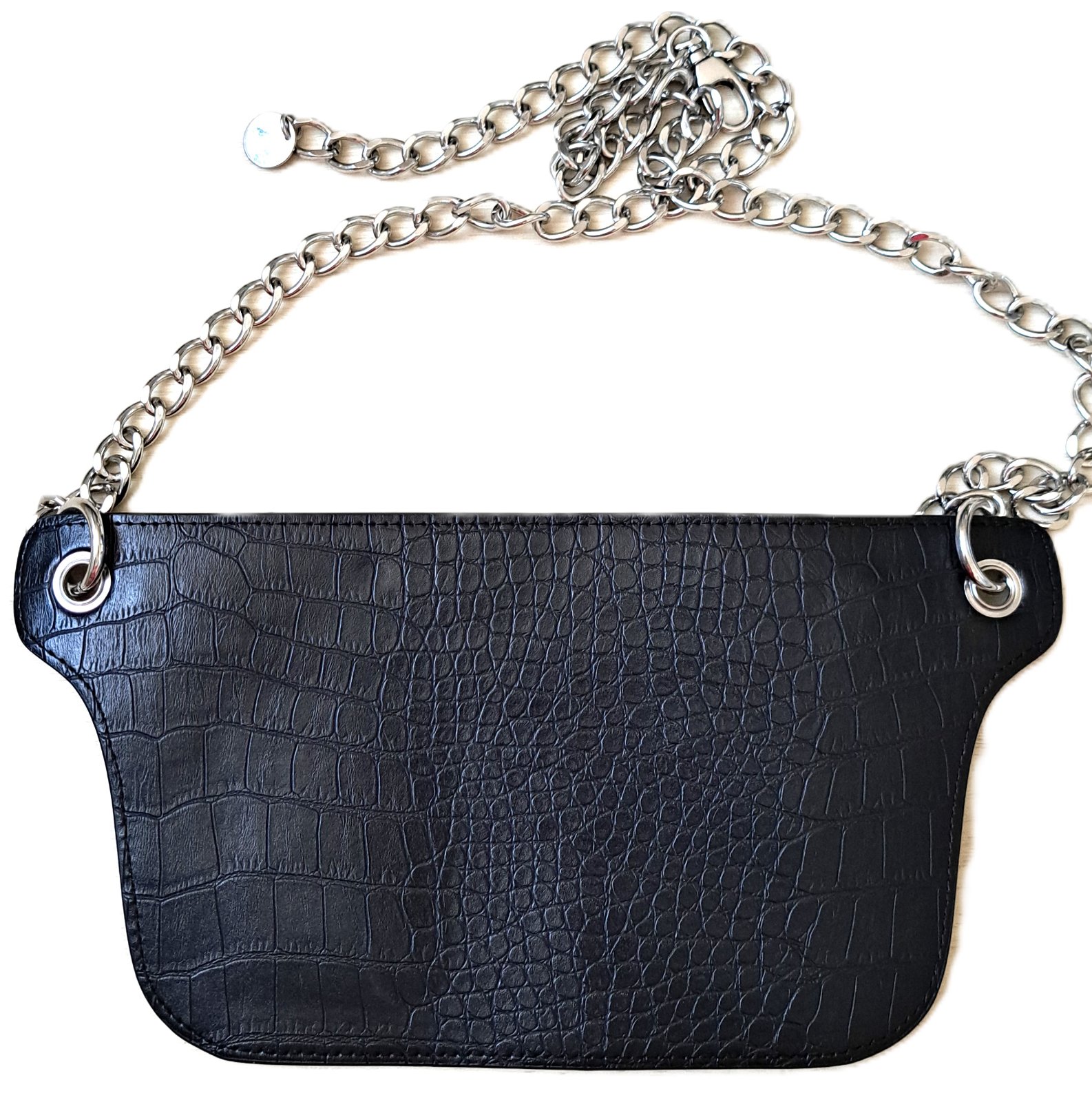 Kabelka H&M - bola nosená minimálne, je v super stave. Kabelka sa dá nosiť cez rameno, ako crossbody, ľadvinka, ale aj miesto opasku. Dĺžka strieborného popruhu je 90 cm, no dá sa skrátiť podľa potreby.