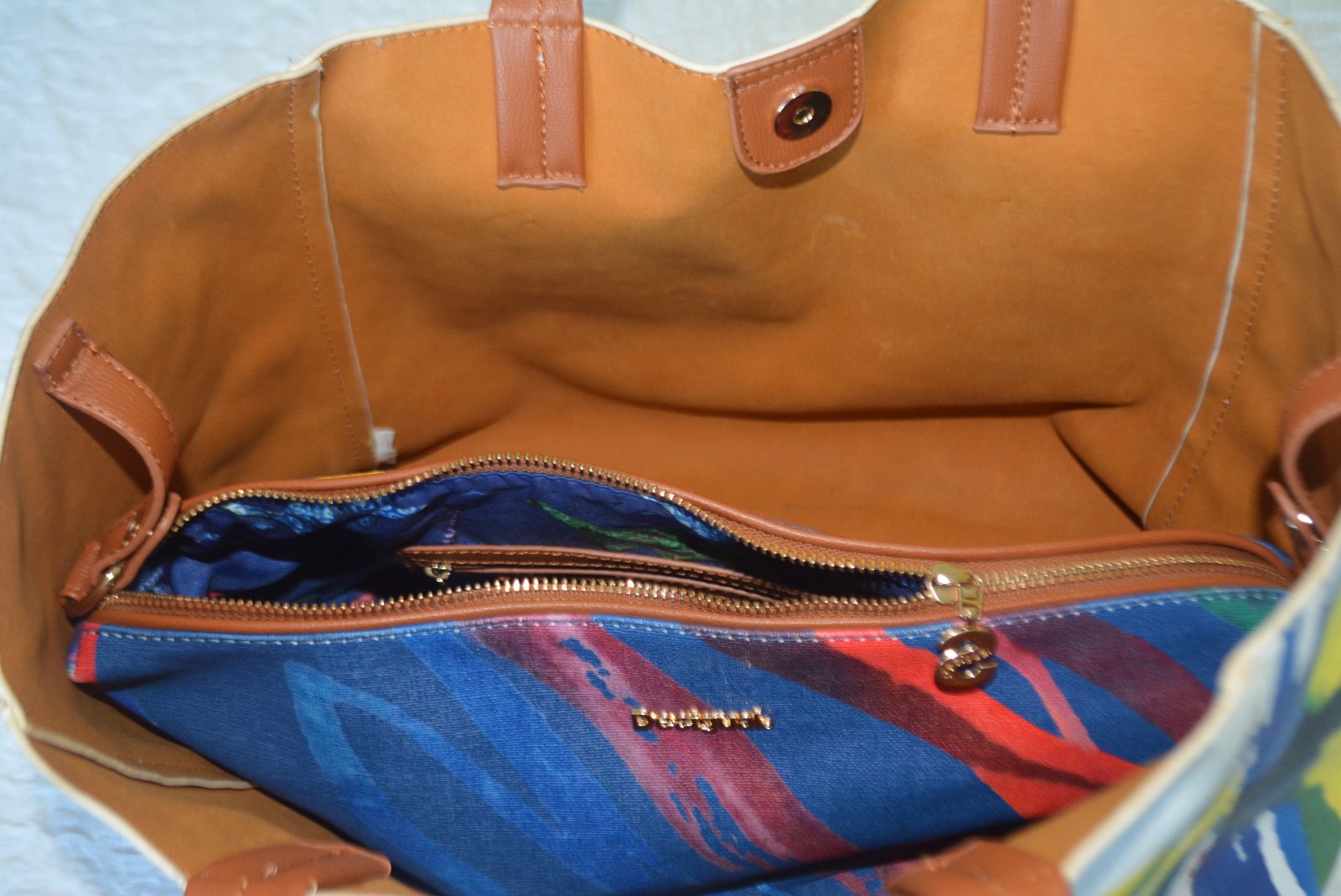 Obidve kabelky sa dajú nosiť samostatne, alebo modrá vopnutá do bielej.