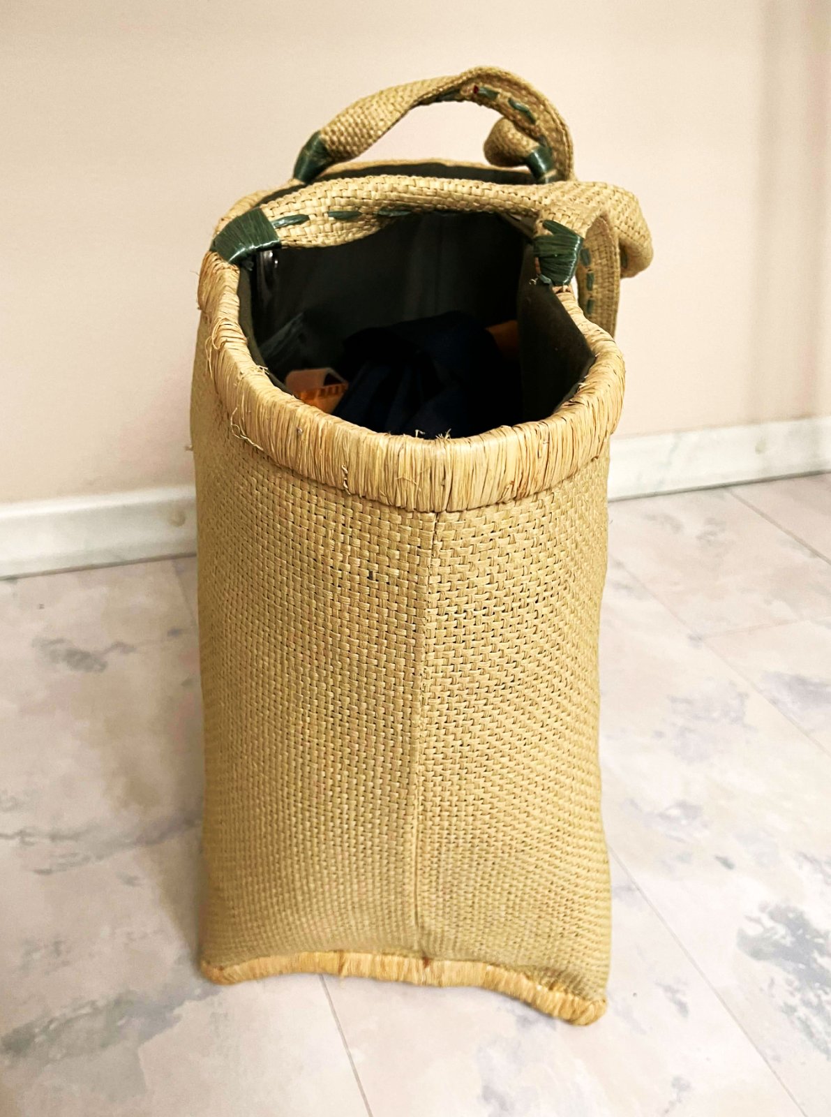 krásny nevšedný letný košík,z prírodného materiálu,krásne detaily vpredu,podšitý bavlneným futrom,ľahúčky, dnu kapsička na zips,privezený z Portugalsja,super zapínanie na magnetku,perfektný na leto,na pláž....