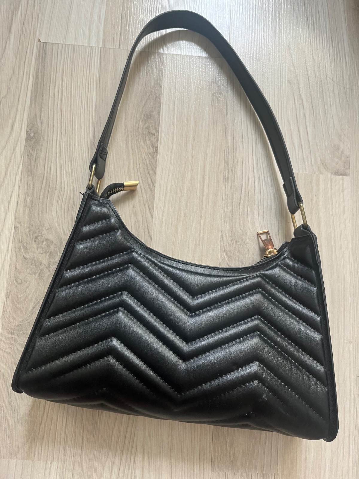 Coccinelle štýlová shoulder flap kabelka materiál: koža farba: čierna so zlatým kovaním Kabelka sa dá nosiť na ramene, alebo popruh vytiahnuť na jednu stranu a bude dlhy veľmi praktický kúsok rozme...