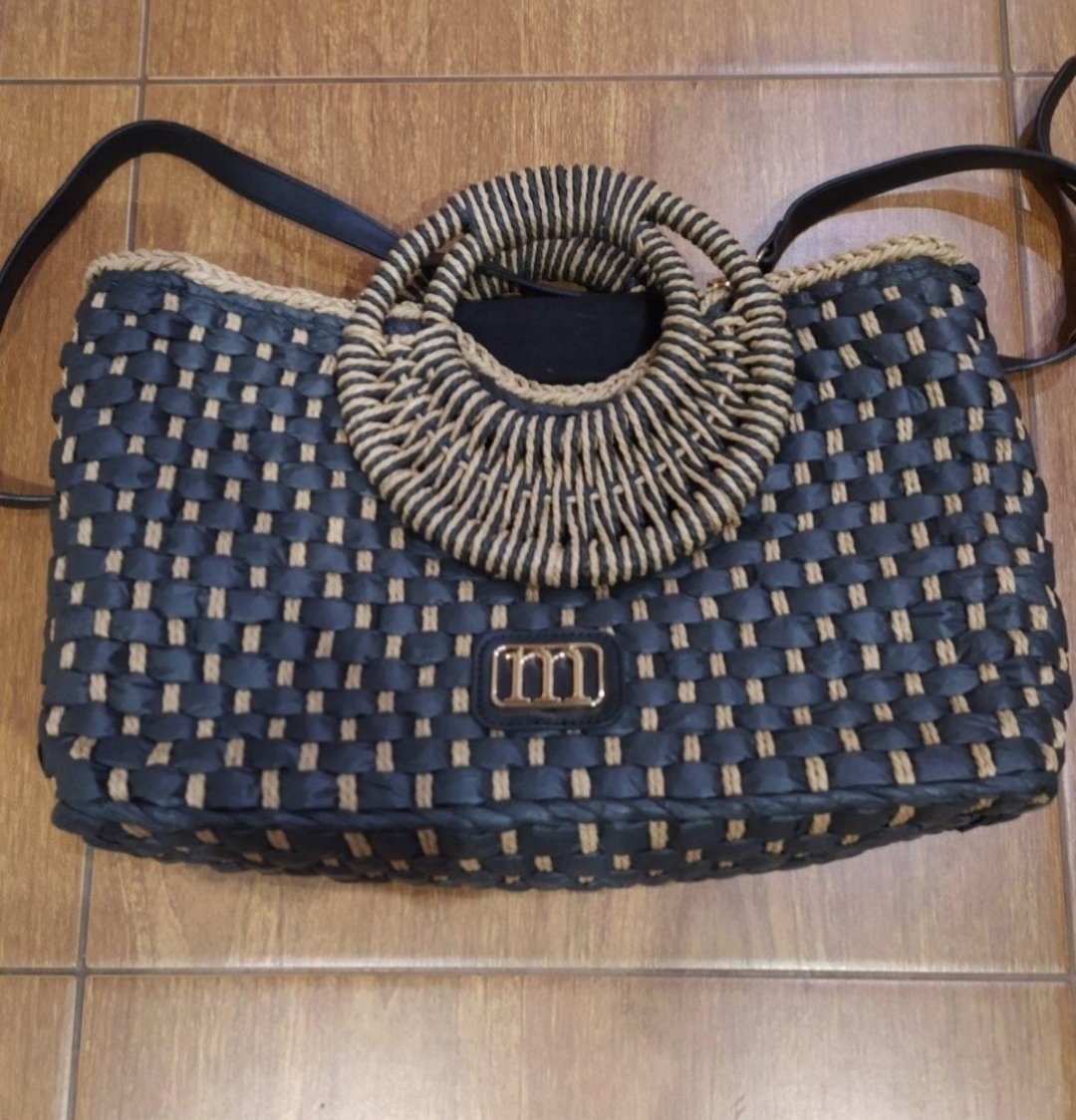 farba: jedna strana biela, druhá čierna so strieborným kovaním odopínateľný dĺžkovo nastaviteľný dlhý popruh + uško do ruky veľmi štýlový kúsok priemer kruhu 20 cm, hrúbka 9 cm materiál: neprav...