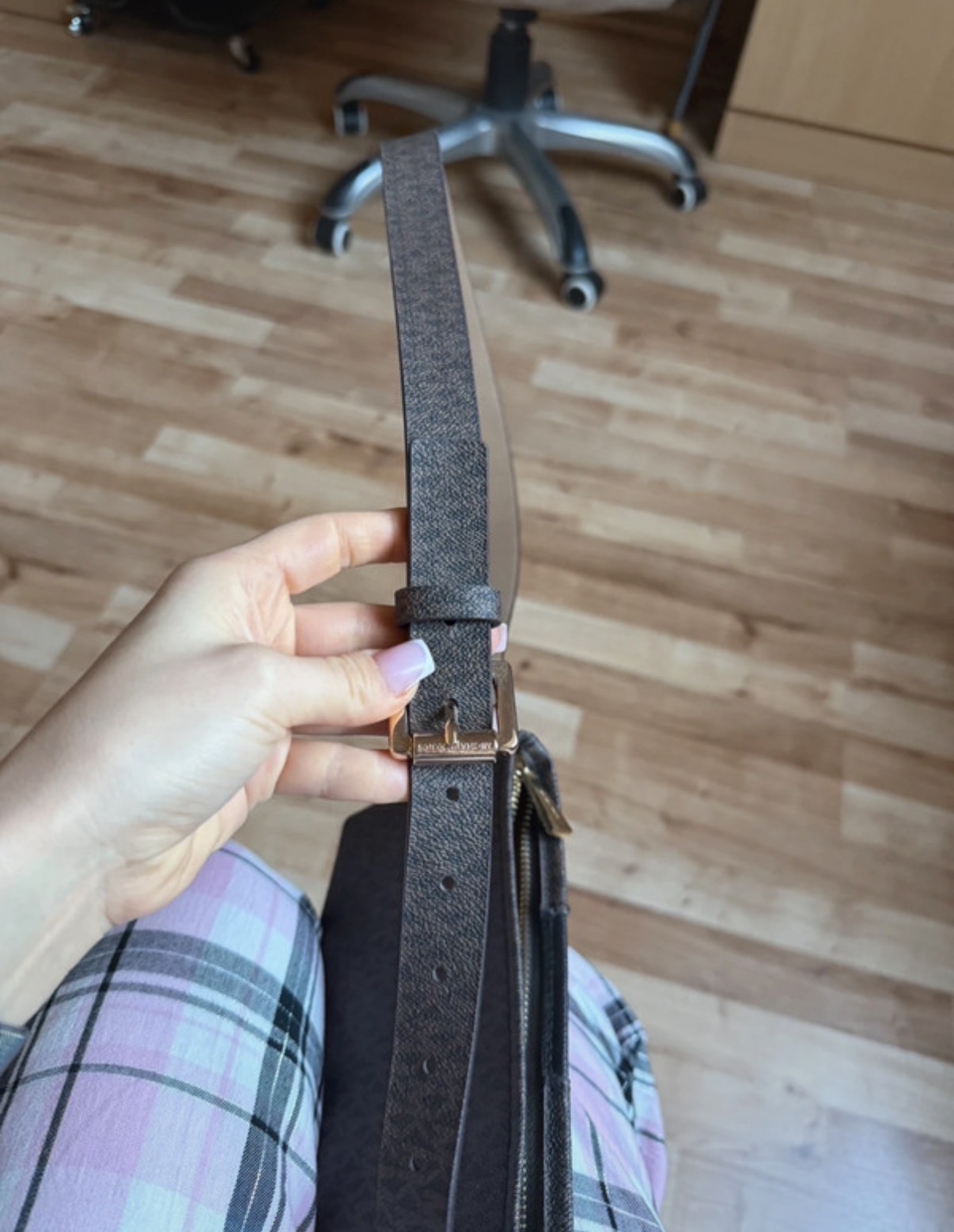 Nenosena, bez vad, ako nova. Da sa nosit do ruky, cez rameno, alebo ako ladvinka. Je k nej odnimatelny retiazkovy popruh, opaskovy popruh.