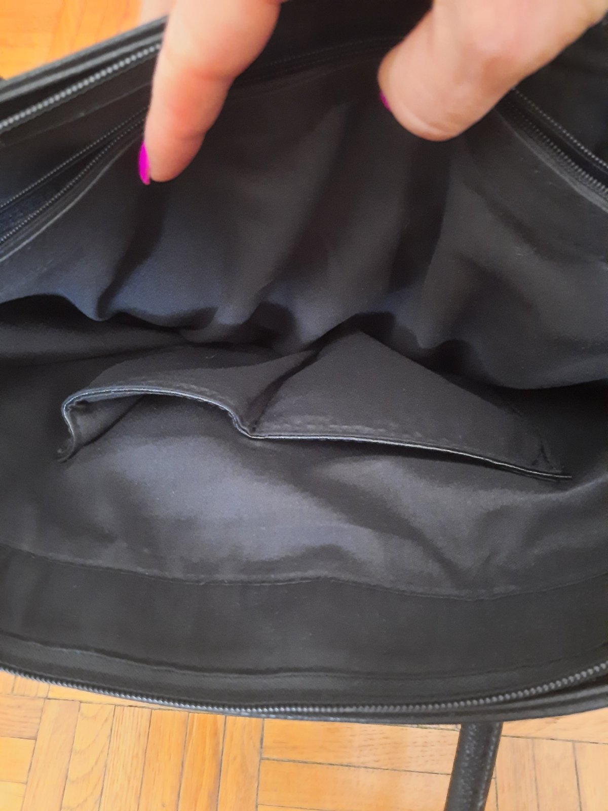 Super veľká čierno-bordová kabelka v top stave. Je ako nová, použitá 1x. Má remienok aj na rameno, ktorý sa dá aj odopnúť. Rúčka je dlhšia- dá sa nosiť aj v ruke aj na rameno. Zapína sa na zips. Vo vnútri je veľa úložného priestoru- menších aj väčších. Vo vnútri je v strede úložný priestor tiež na zips.
