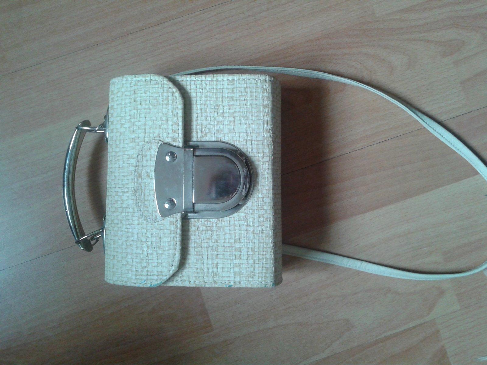 Menšia kabelka pre slečnu. Na hrane trochu zamodrela. Vid foto .Rozmery sú:šírka 19cm, výška 16cm, a hĺbka 8cm. Dĺžka na rameno je 47cm x2.