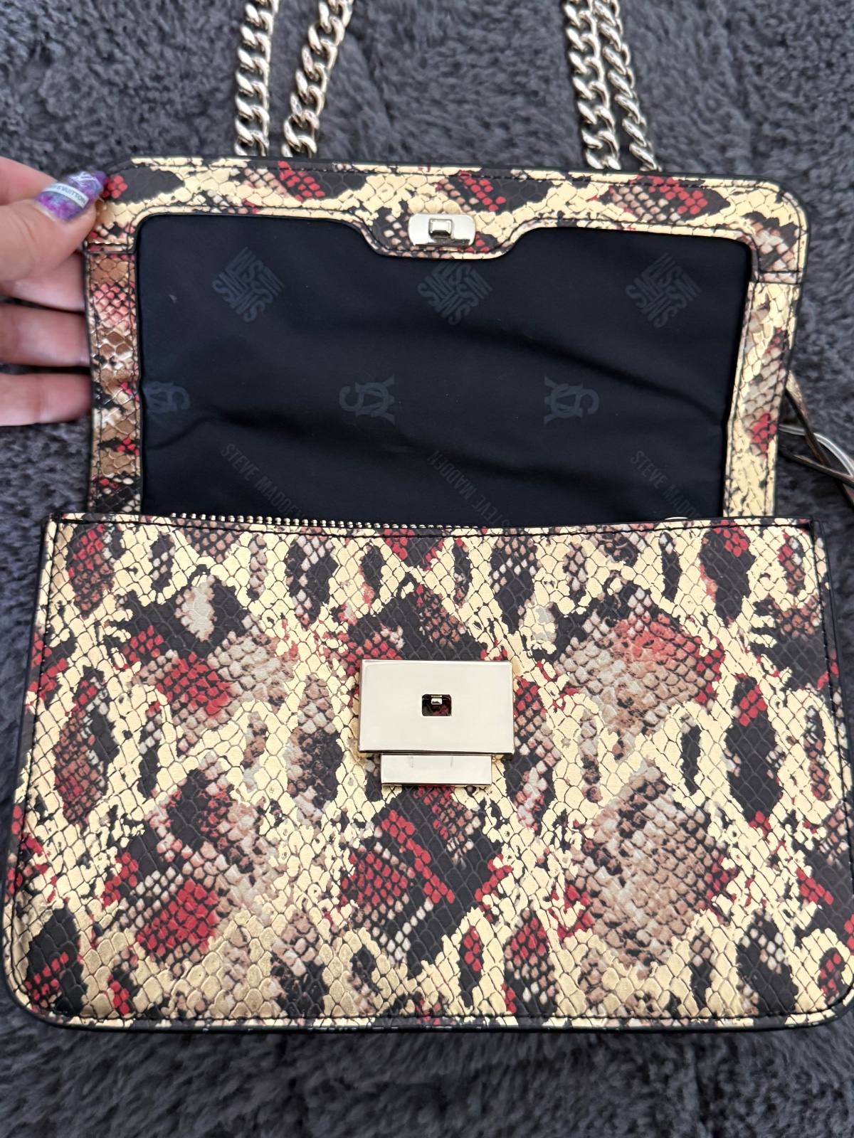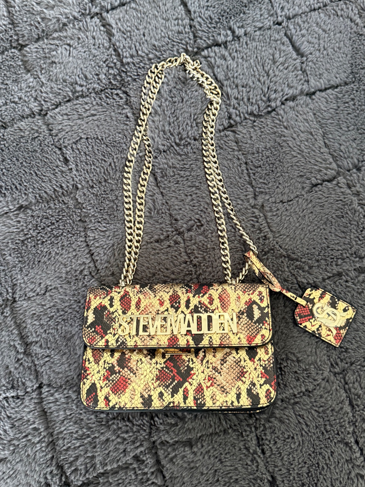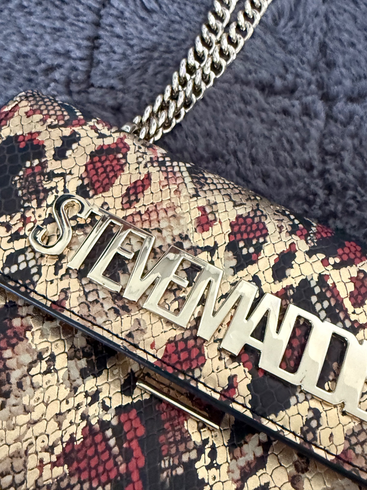 Menšia kabelka Steve Madden. Zlato-bordový hadí vzor. Dá sa nosit ako crossbody alebo na remene. Nová, len skladovaná.