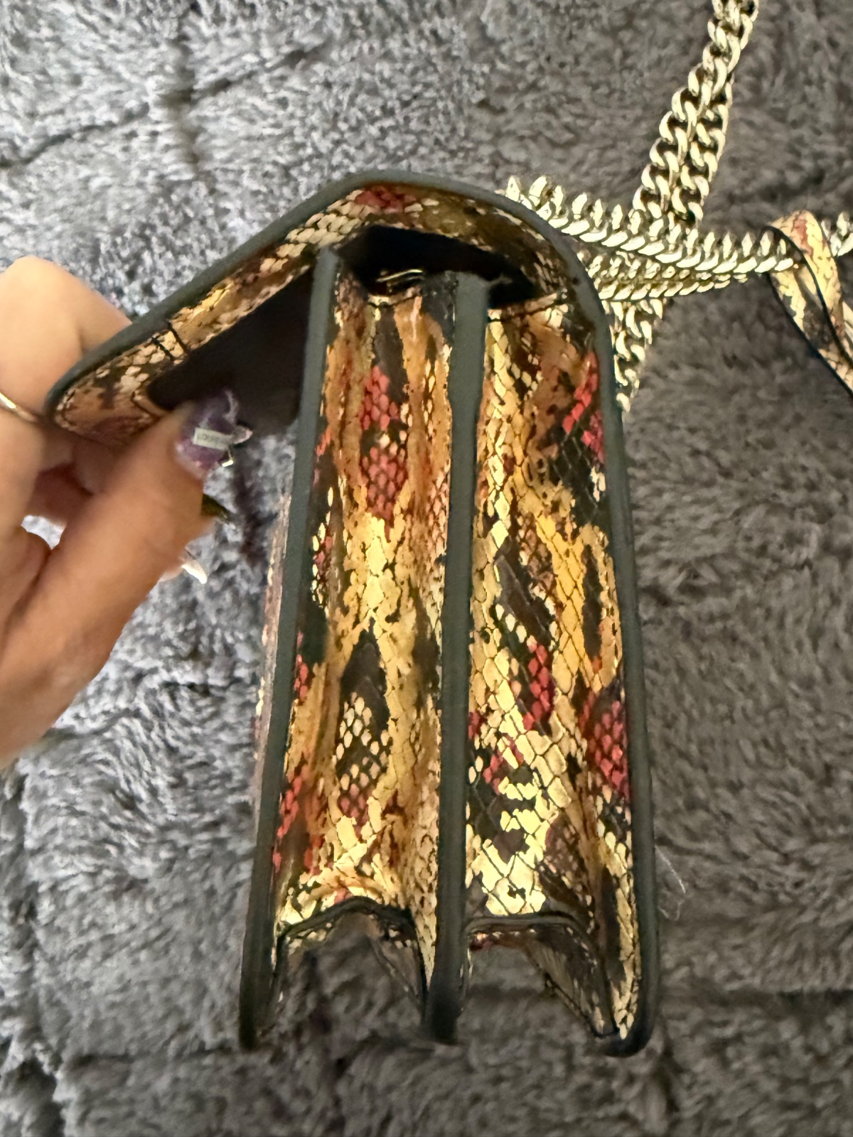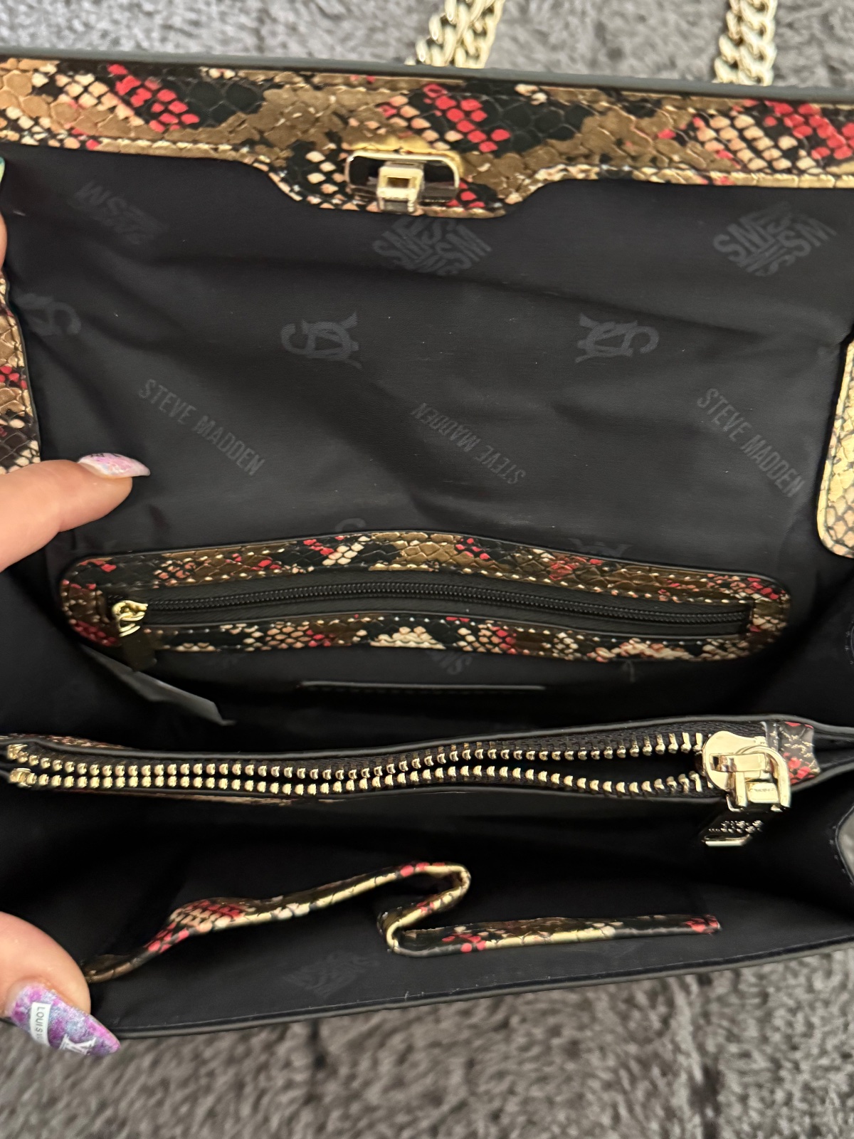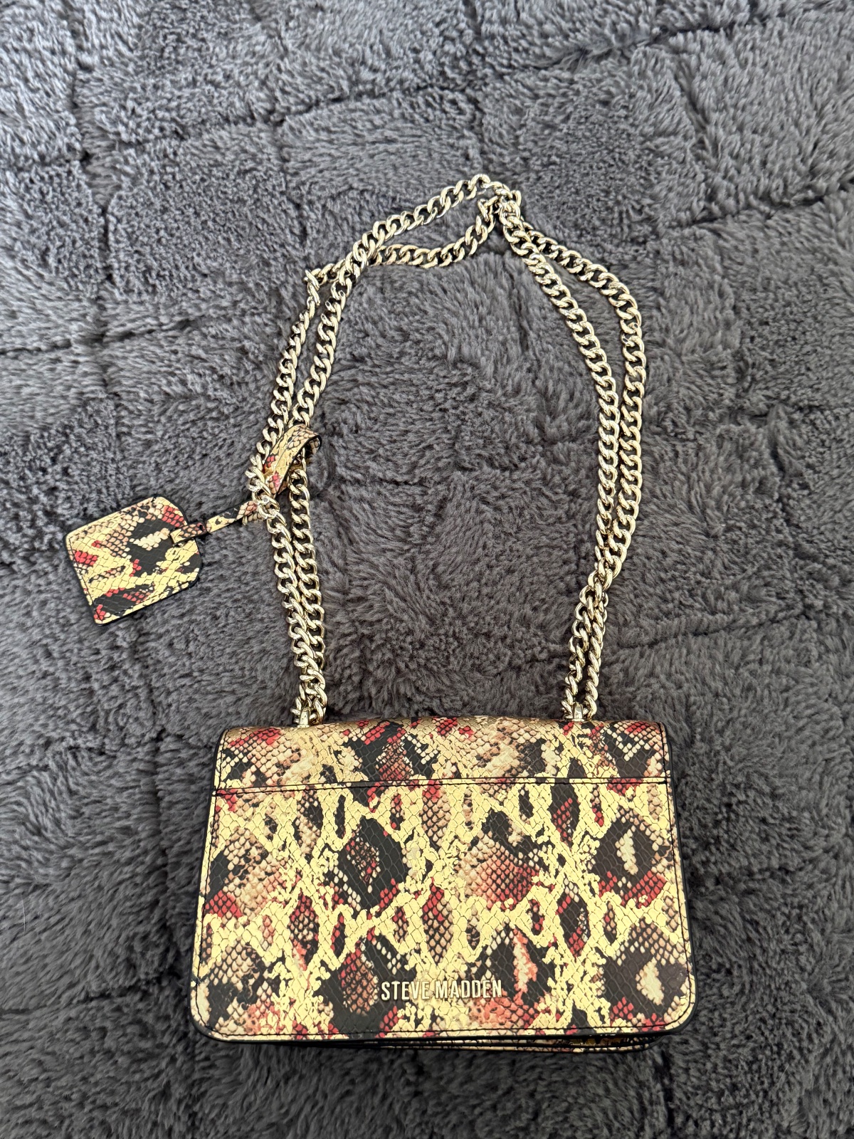 Menšia kabelka Steve Madden. Zlato-bordový hadí vzor. Dá sa nosit ako crossbody alebo na remene. Nová, len skladovaná.